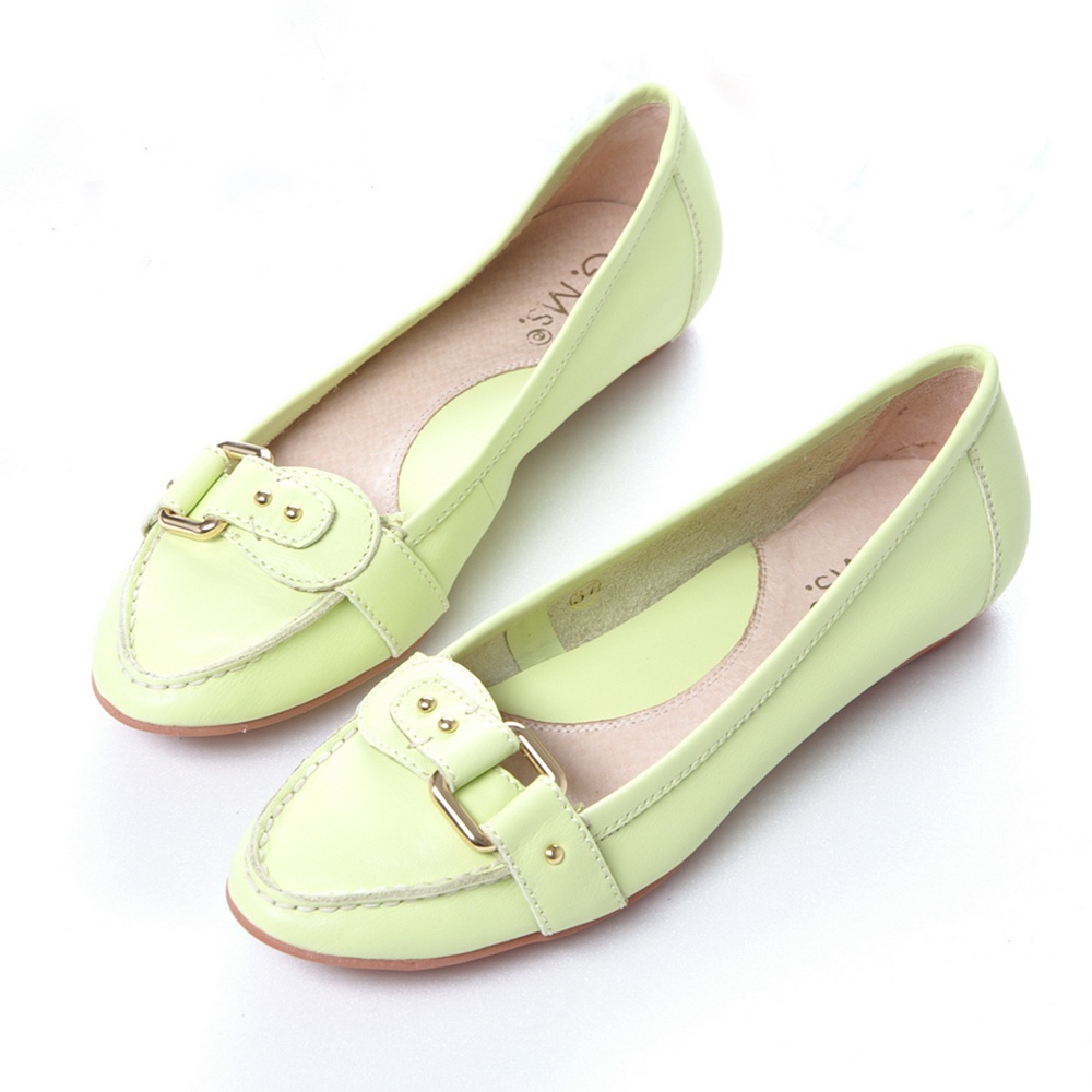 G.Ms. 經典質感扣環‧小牛皮尖頭平底鞋‧檸檬黃