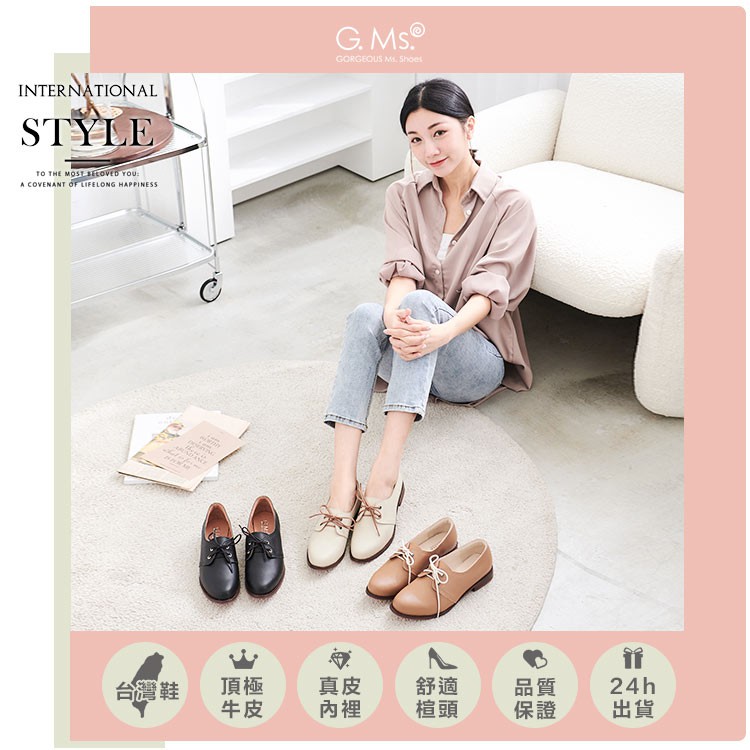 G.Ms. MIT系列-素面牛皮撞色鞋帶牛津鞋-駝色