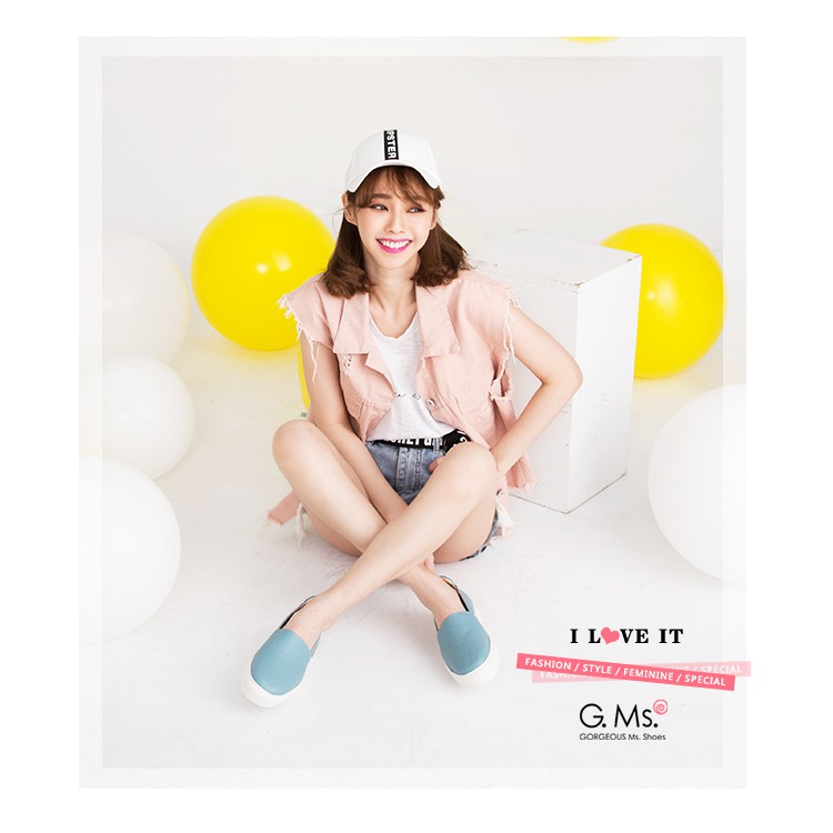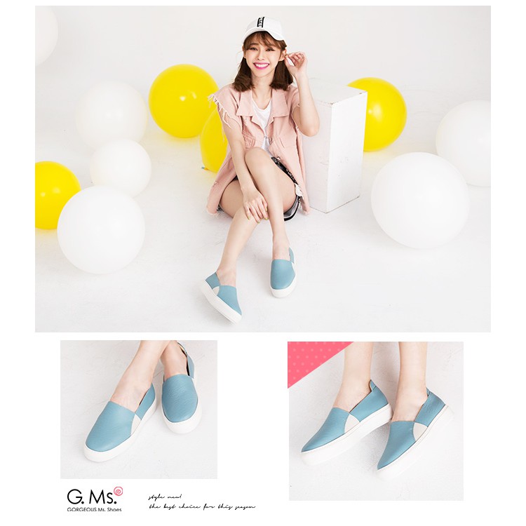 G.Ms. MIT系列-百搭Q彈牛皮素面顯瘦厚底懶人鞋-藍色