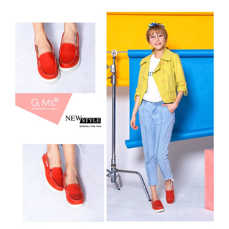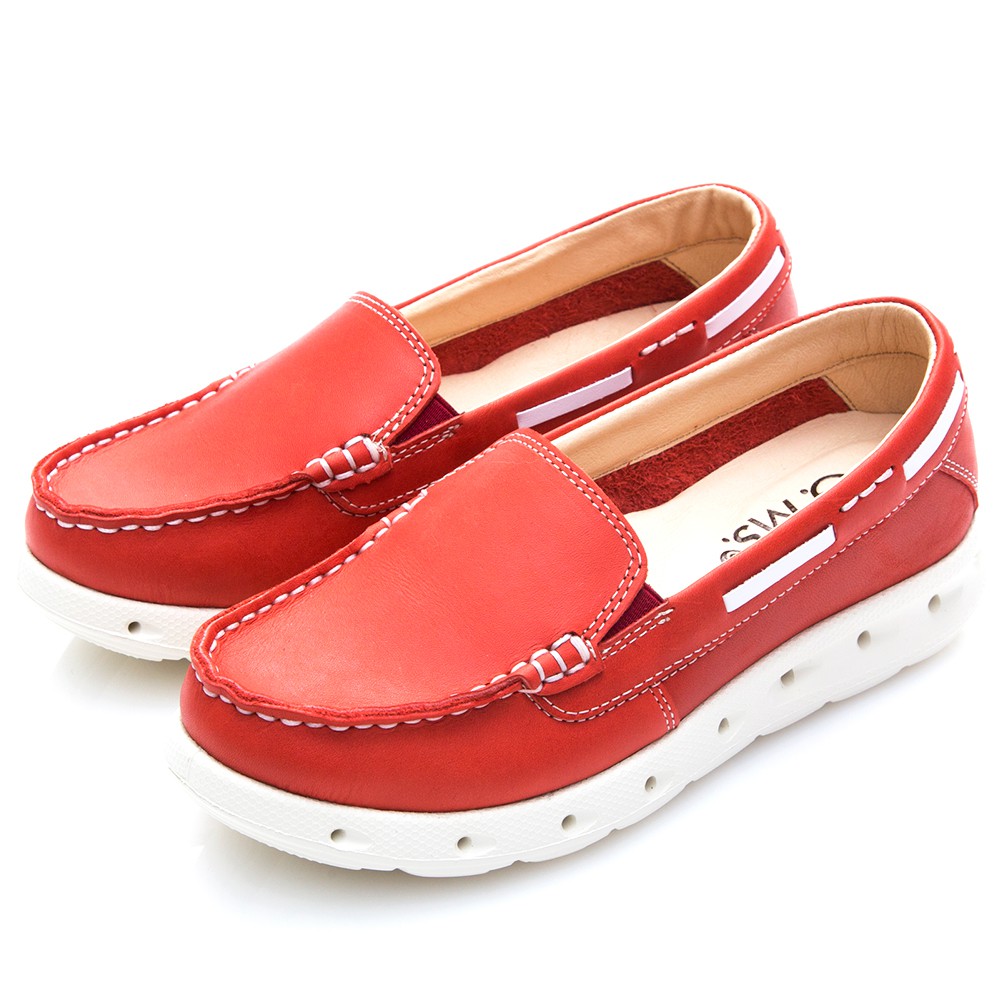 G.Ms. MIT輕量超軟Q-牛皮素面莫卡辛休閒鞋-紅色