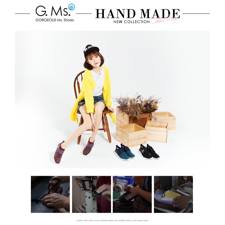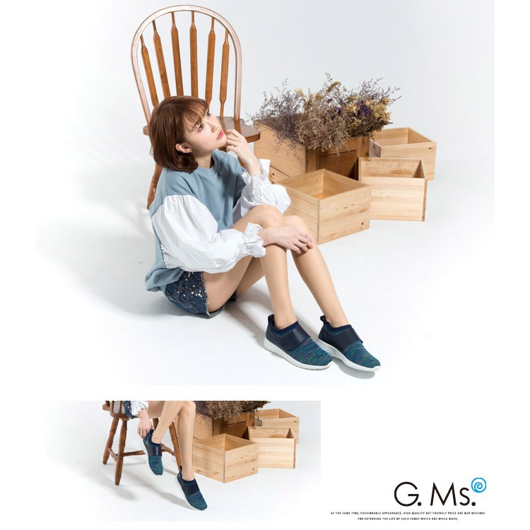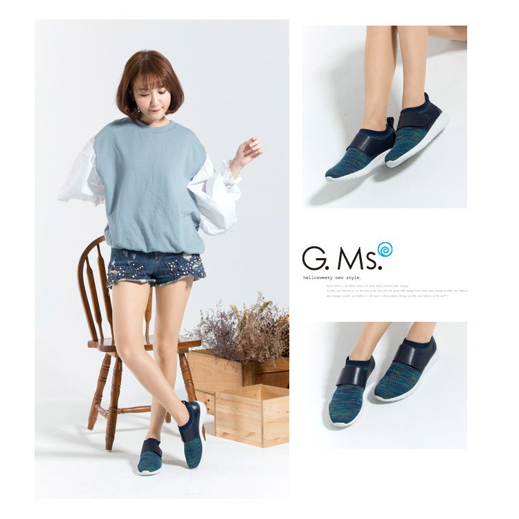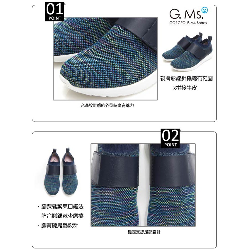 G.Ms. MIT極輕量-針織拼接牛皮記憶鞋墊休閒鞋-藍色