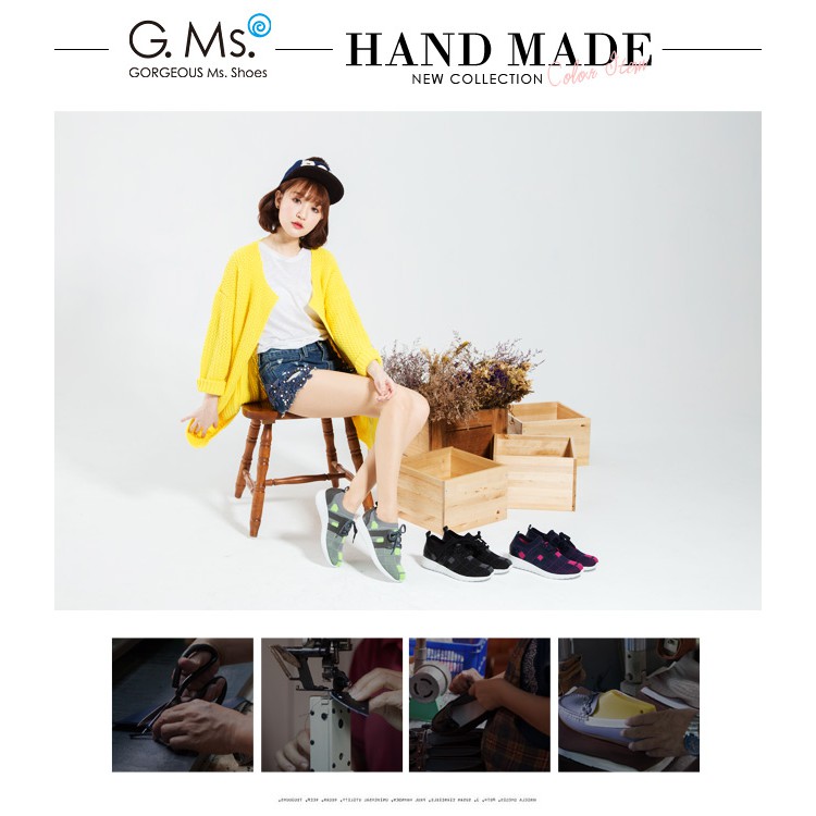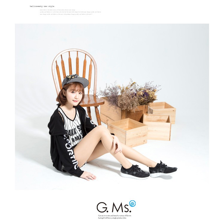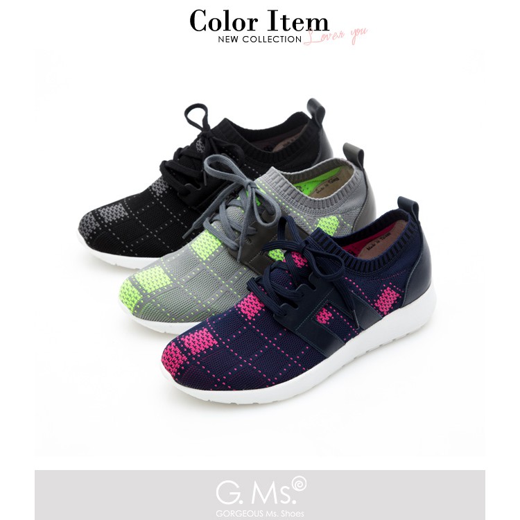 G.Ms. MIT極輕量-格紋牛皮綁帶記憶鞋墊休閒鞋-黑色