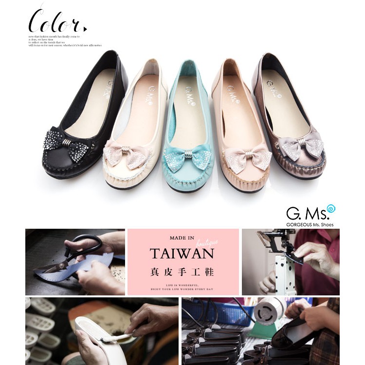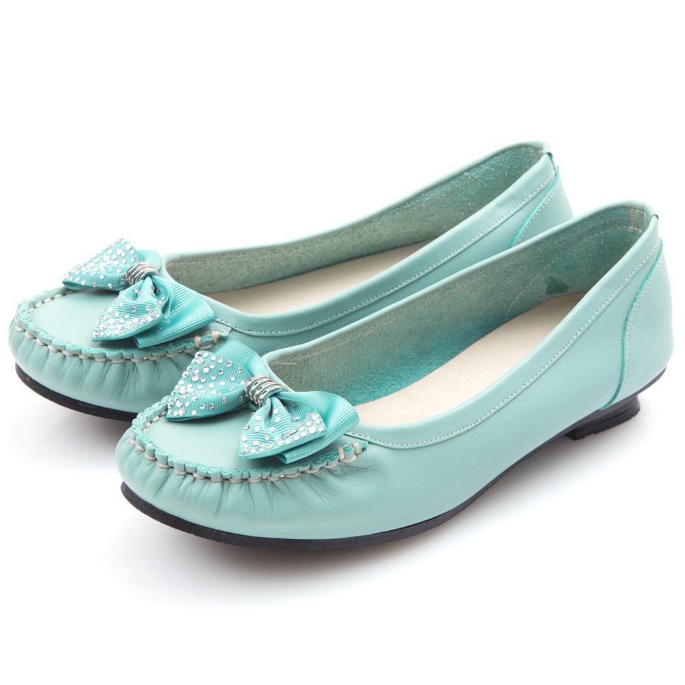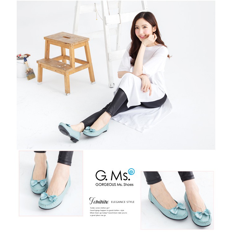G.Ms. MIT系列-燙鑽蝴蝶結莫卡辛低跟鞋-淺藍