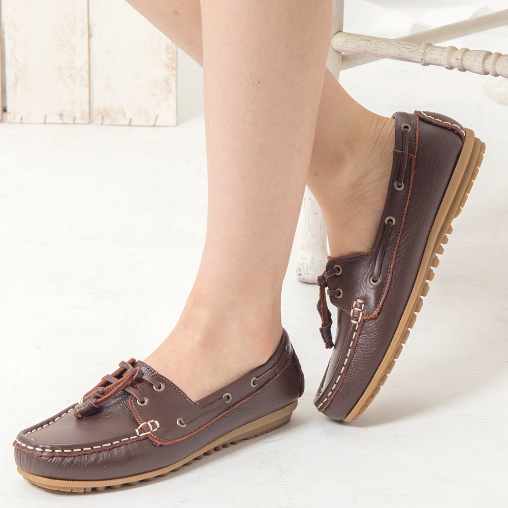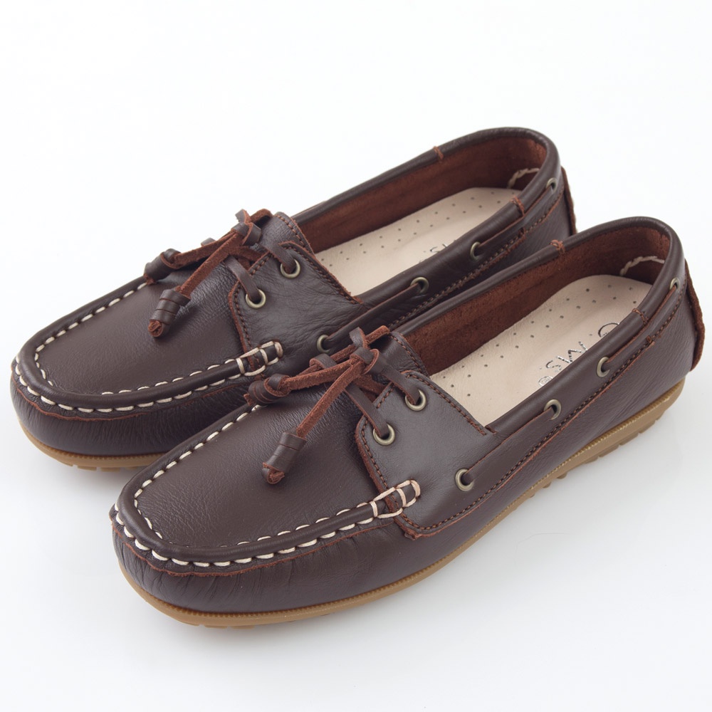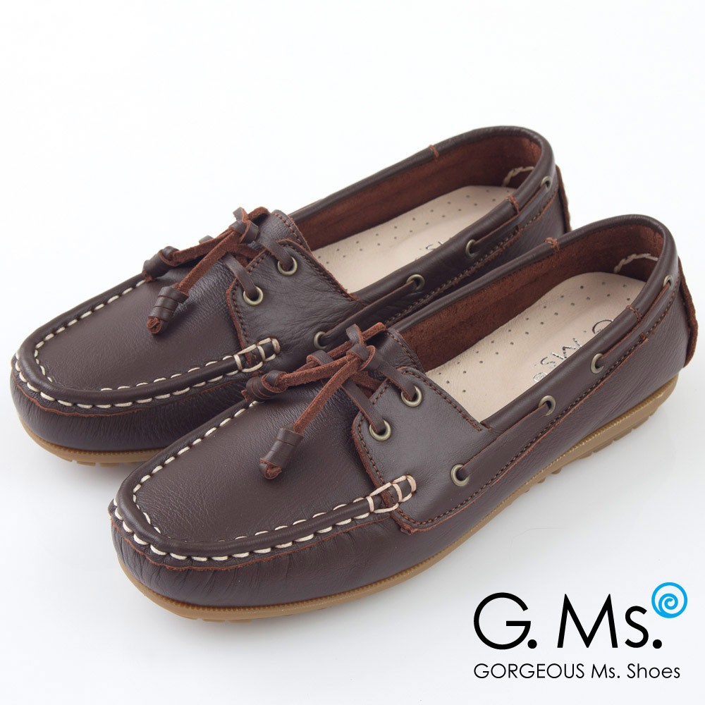 G.Ms. MIT情侶鞋系列-水洗牛皮帆船鞋-濃咖啡