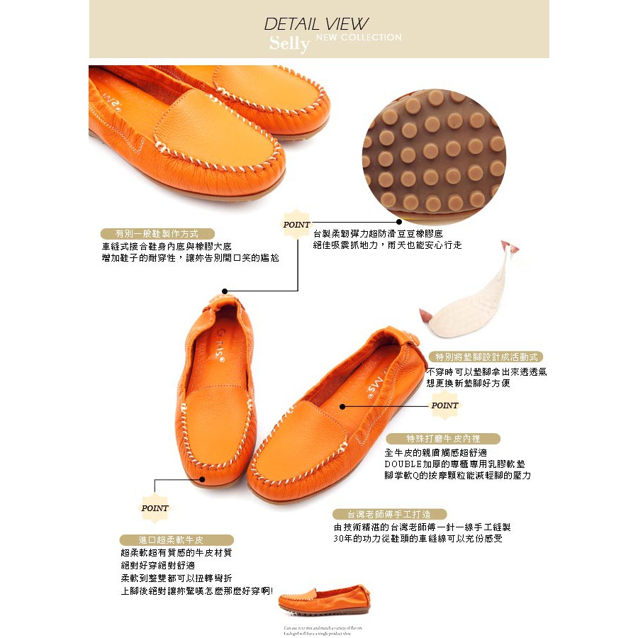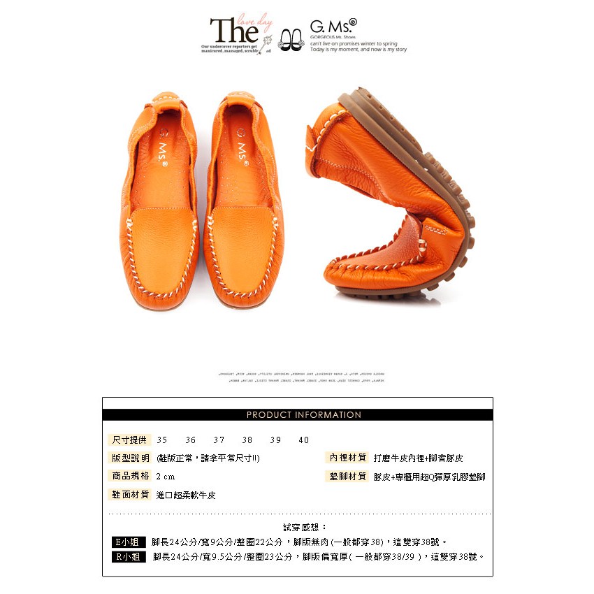G.Ms.MIT系列-極好穿超軟Q全牛皮莫卡辛鞋-時尚橘35碼