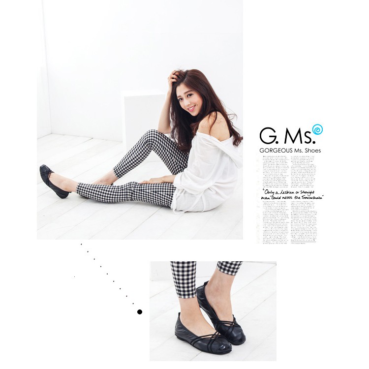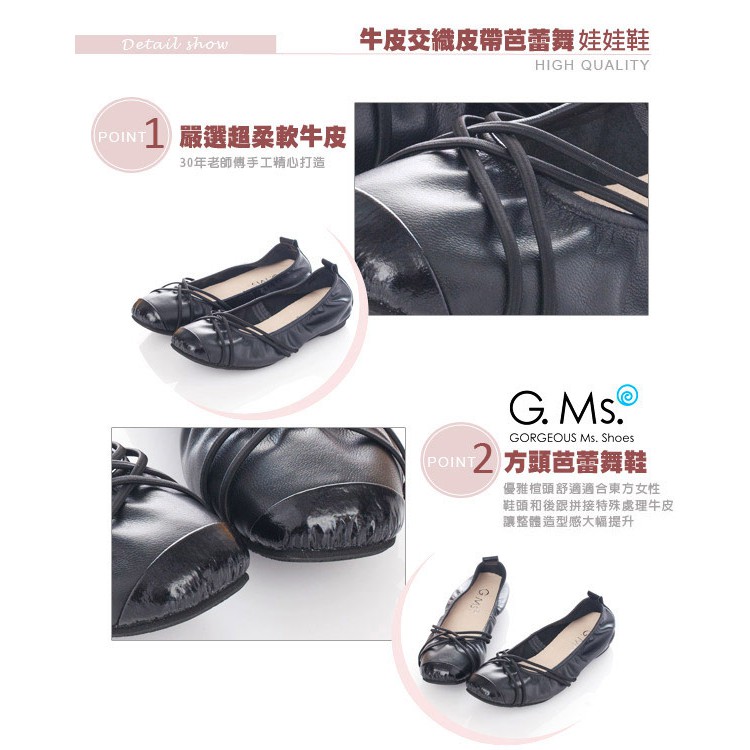 G.Ms. MIT系列-牛皮交織皮帶芭蕾舞娃娃鞋-時尚黑
