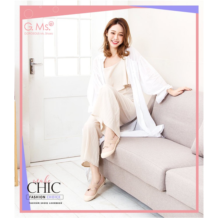 G.Ms. MIT系列-貝殼頭牛皮交叉鬆緊帶休閒便鞋-粉色