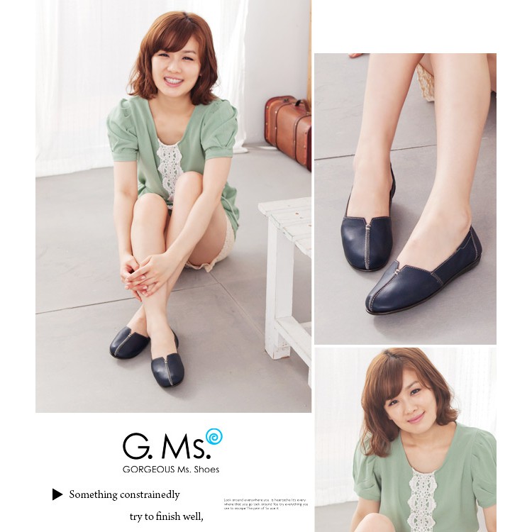 G.Ms. MIT系列-車縫簡約造型真皮娃娃便鞋-深情藍35碼