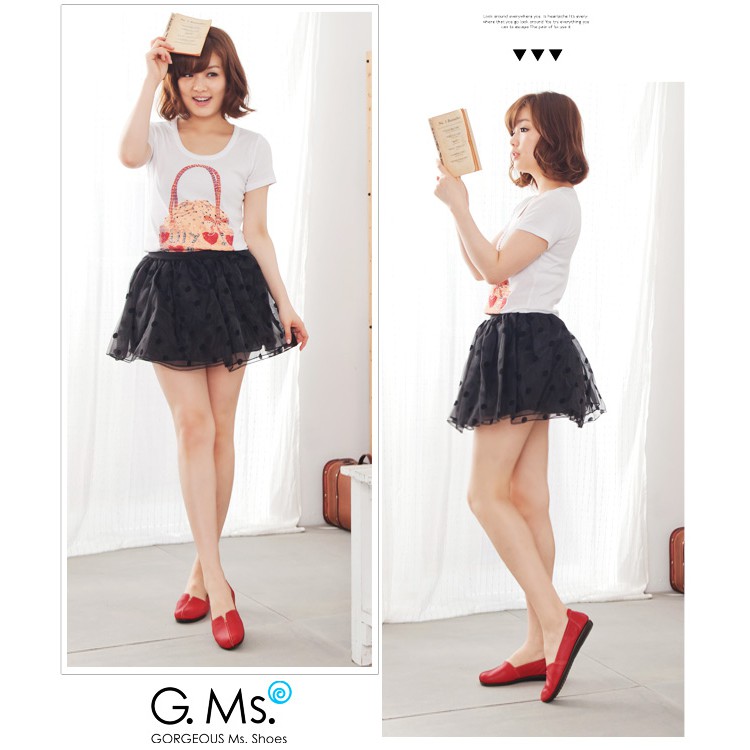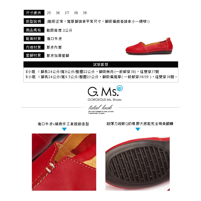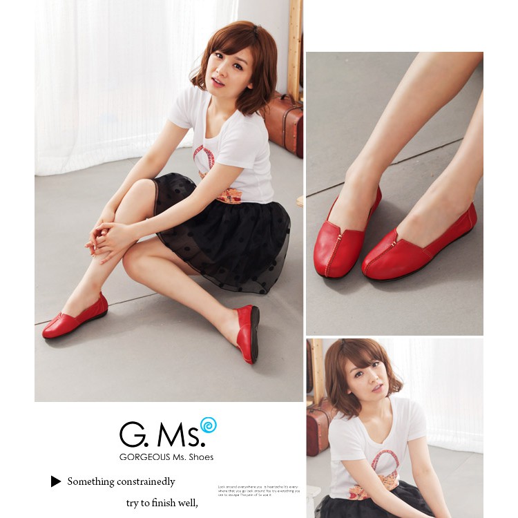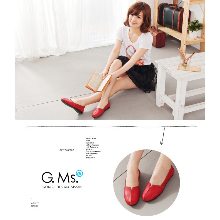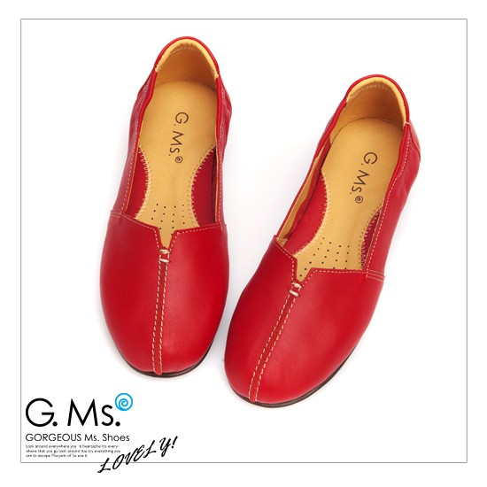 G.Ms. MIT系列-車縫簡約造型真皮娃娃便鞋- 俏皮紅38碼