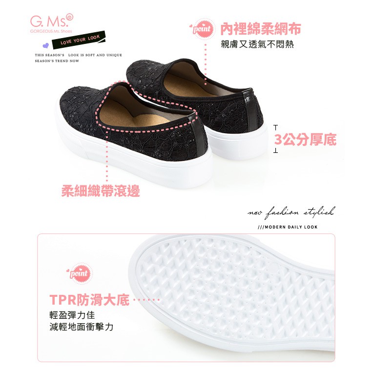 G.Ms. MIT系列-極輕量樂福懶人休閒鞋-蕾絲黑