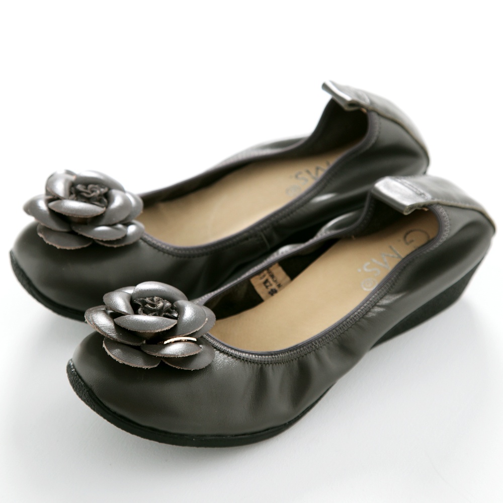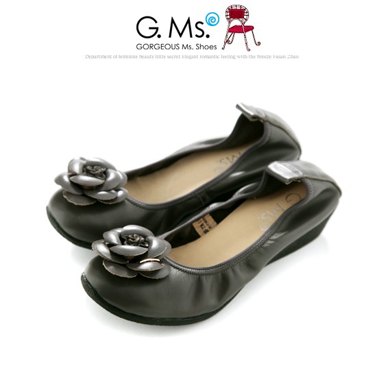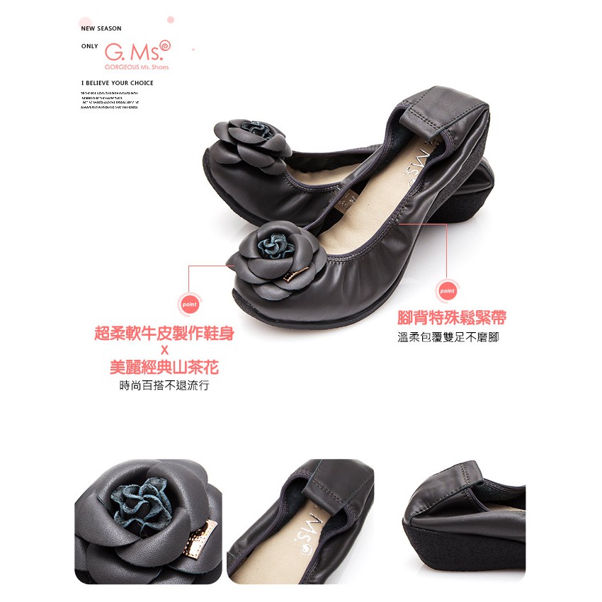 【G.Ms.】經典山茶花‧柔軟彎折厚底坡跟牛皮娃娃鞋‧暖暖深灰