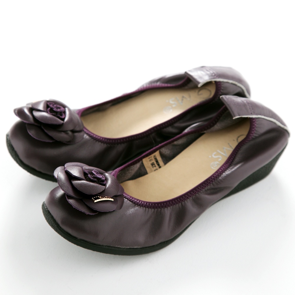 【G.Ms.】經典山茶花‧柔軟彎折厚底坡跟牛皮娃娃鞋‧安娜蘇紫