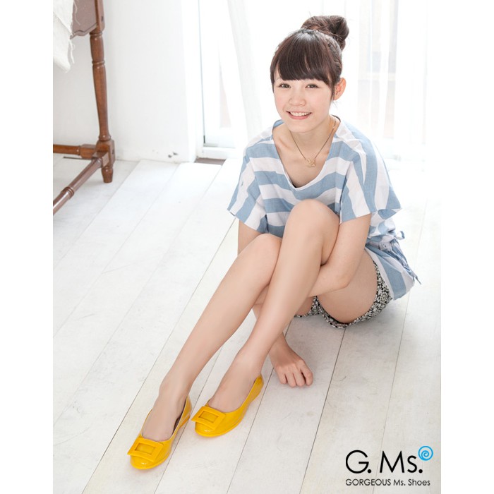 G.Ms. 烤漆方釦牛漆皮微坡跟平底鞋-黃色39碼