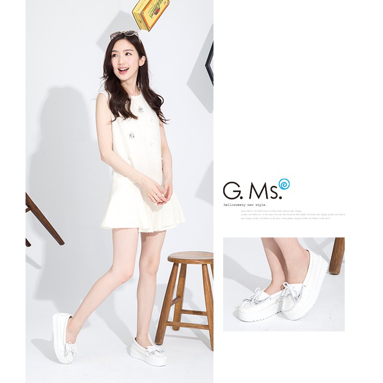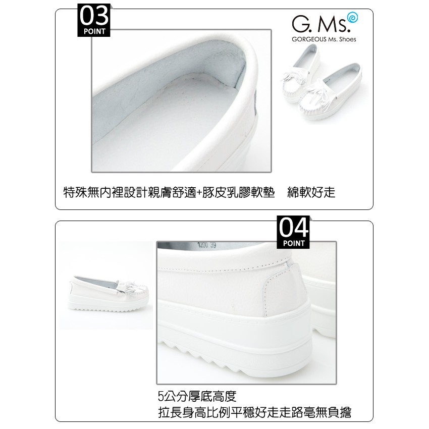 G.Ms. 牛皮莫卡辛厚底鬆糕綁帶蝴蝶結鞋D款-白色