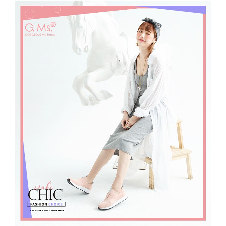 G.Ms. MIT系列-針織網布懶人休閒鞋-粉色