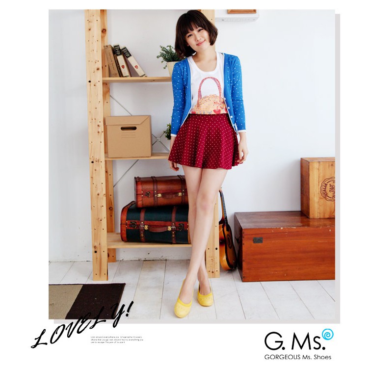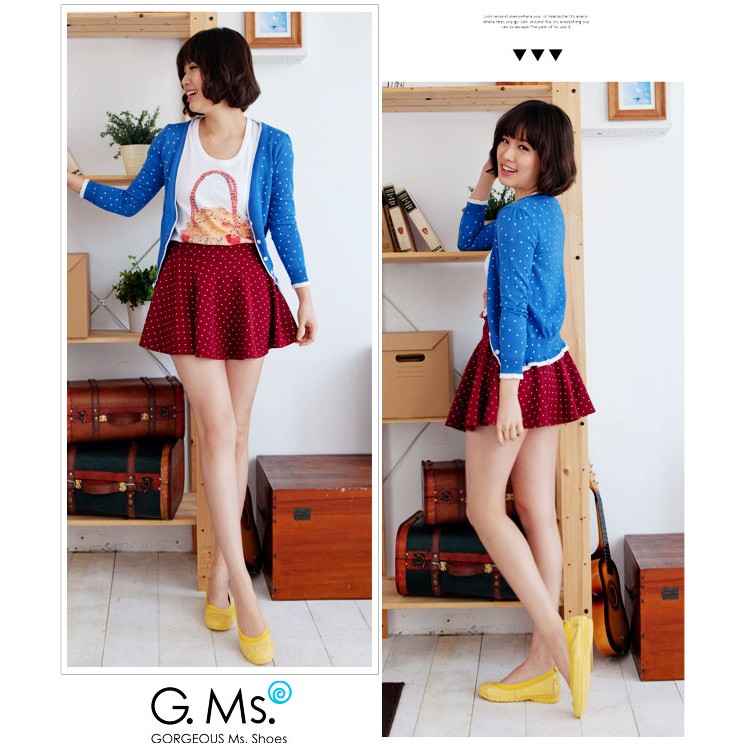 G.Ms. 氣質金色鉚釘全真皮微坡跟娃娃鞋-黃色36碼
