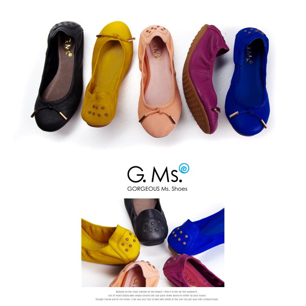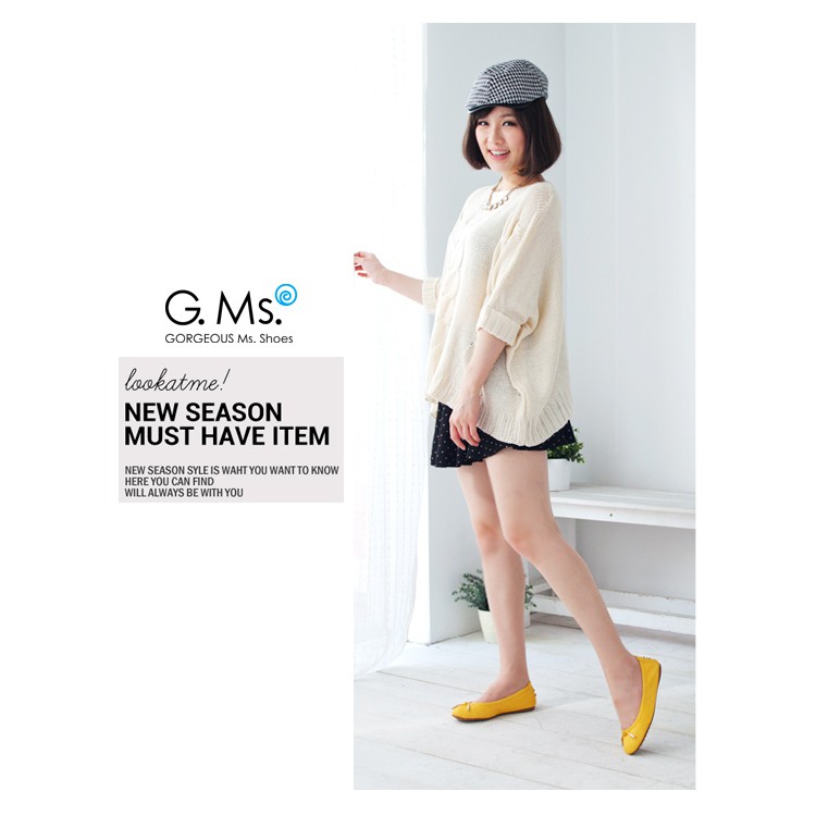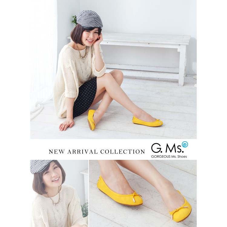 G.Ms. 輕旅行-全真皮單結蝴蝶結折疊豆豆鞋(無鞋袋)-香蕉黃35碼