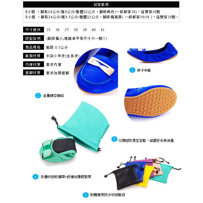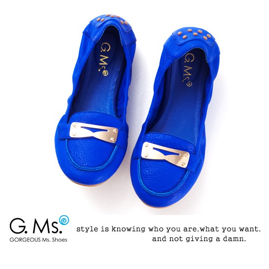 G.Ms. 輕旅行-金屬飾釦折疊旅行莫卡辛鞋(無鞋袋)-優越藍