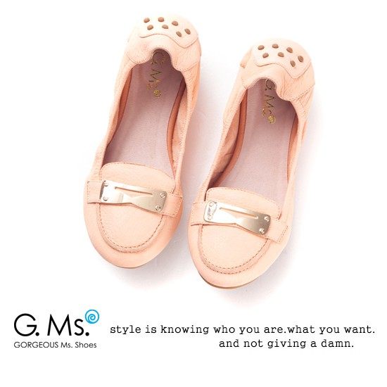 G.Ms. 輕旅行-金屬飾釦折疊旅行莫卡辛鞋(無鞋袋)-優美粉