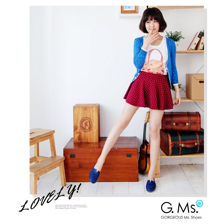 G.Ms. 全真皮車線鏤空豆豆底懶人鞋-渡假藍34碼