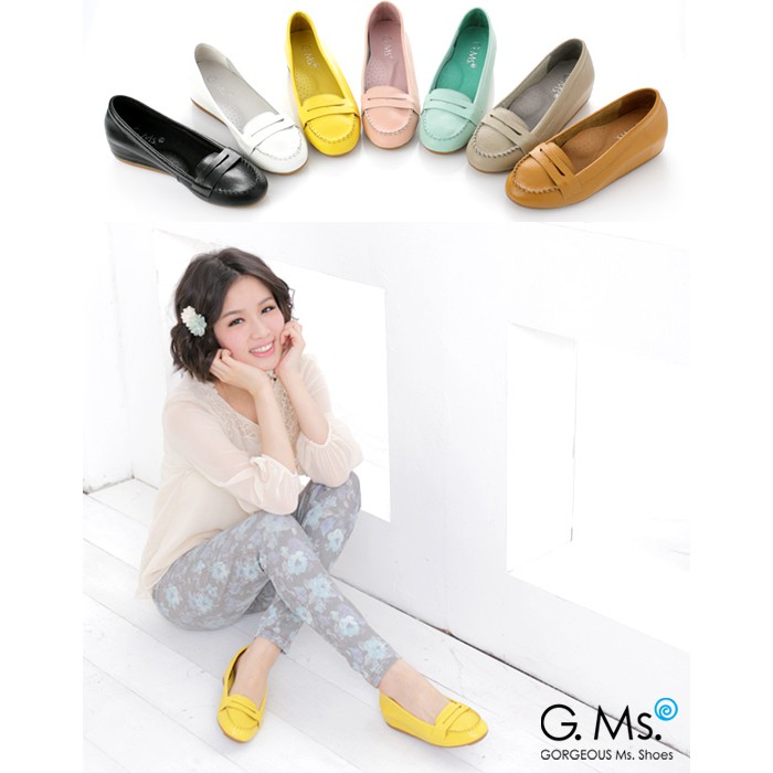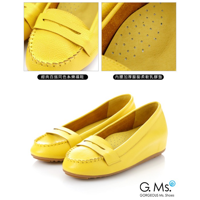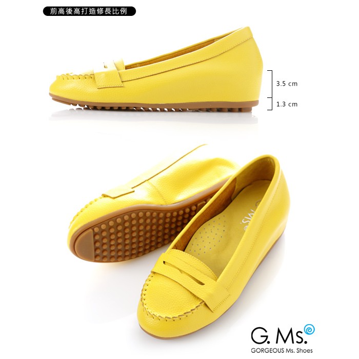【G.Ms.】簡約莫卡辛真皮內增高豆豆鞋‧萊姆黃