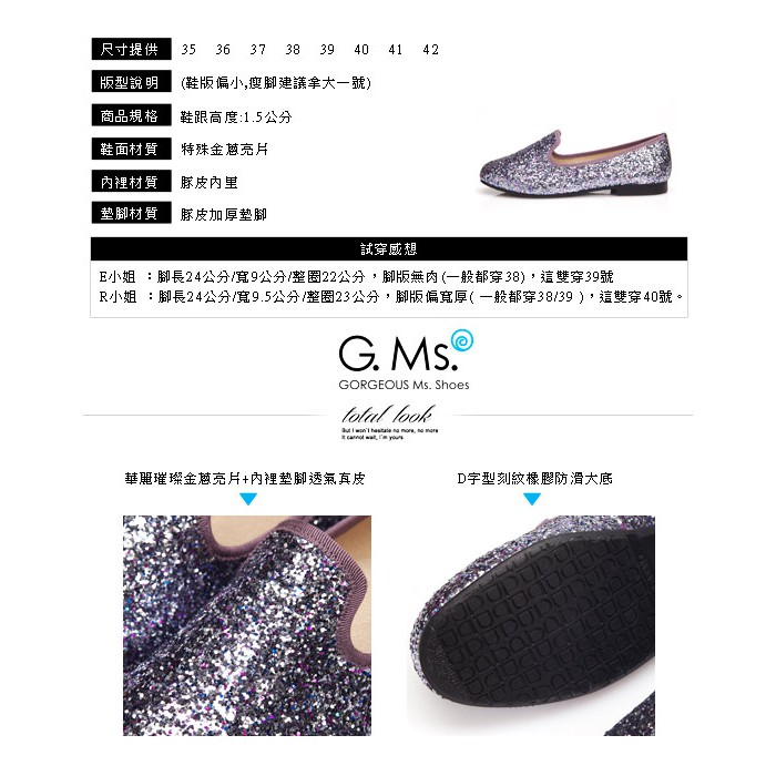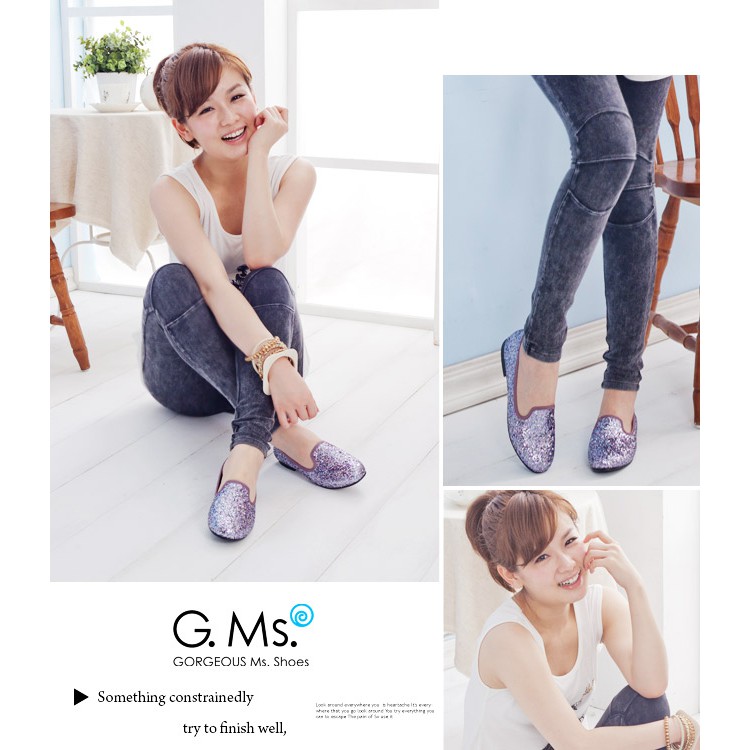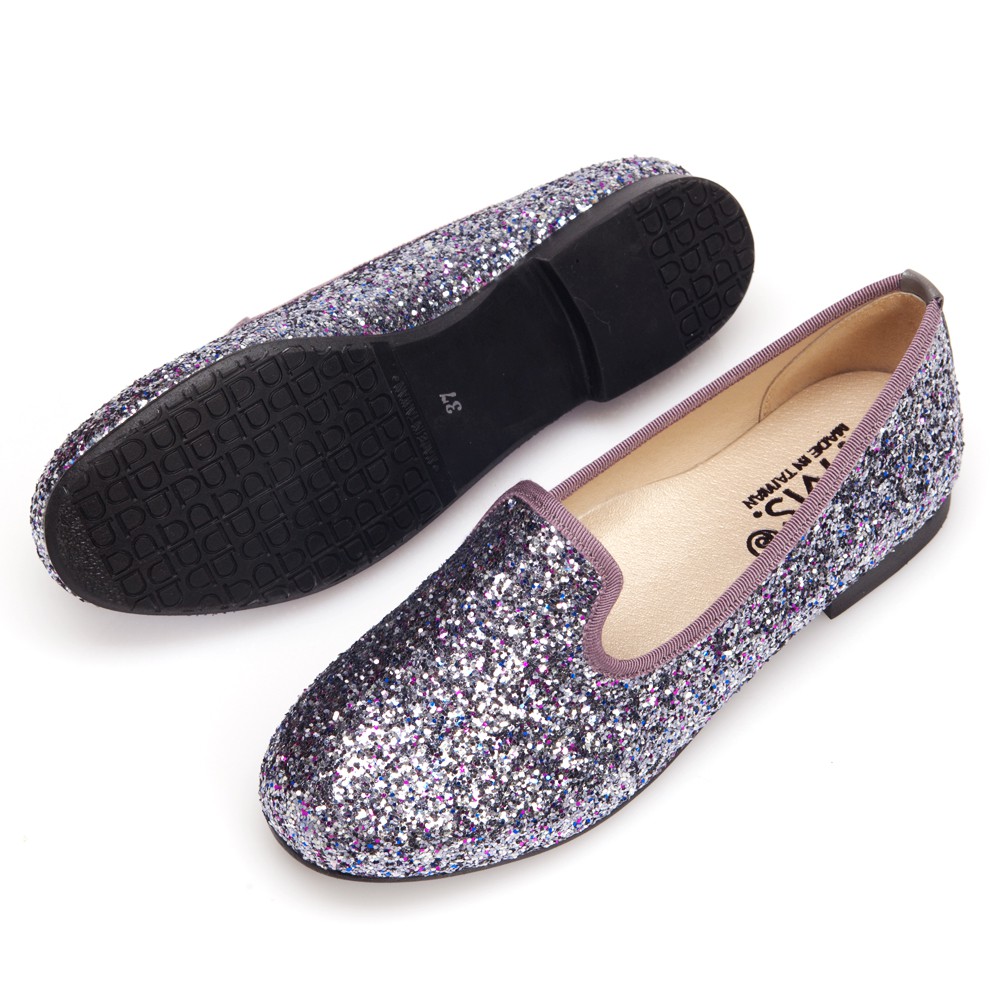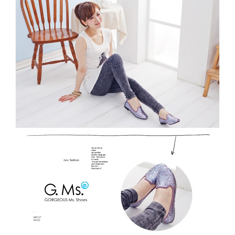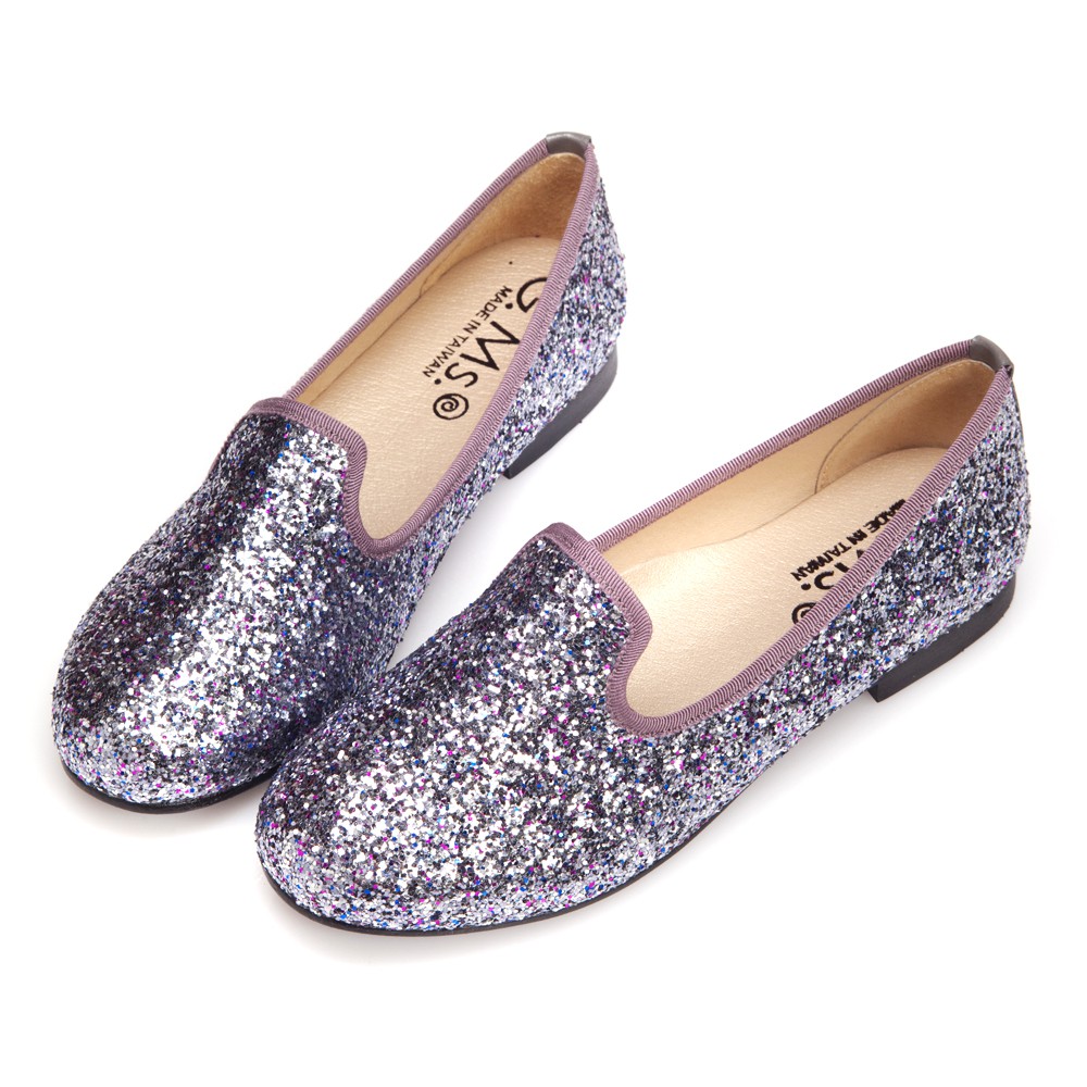 G.Ms. MIT系列-襲捲時尚-閃耀金蔥亮片全真皮樂福鞋-銀灰鑽36碼