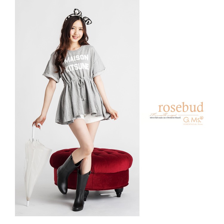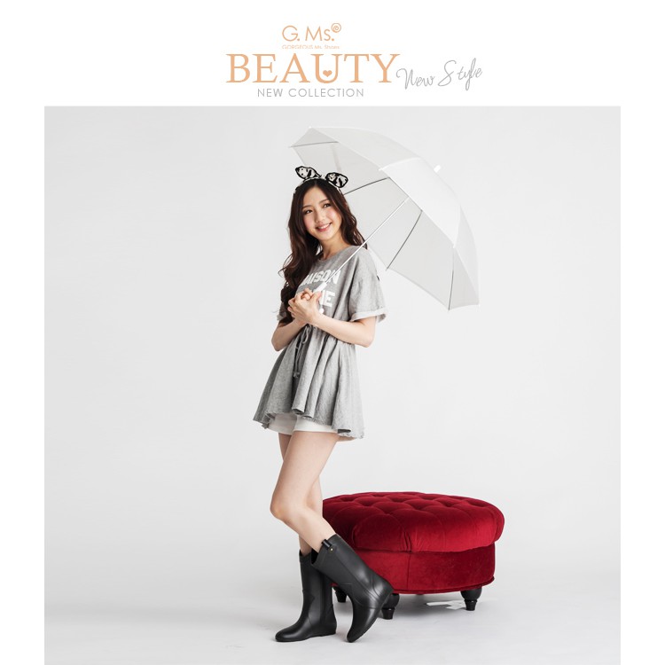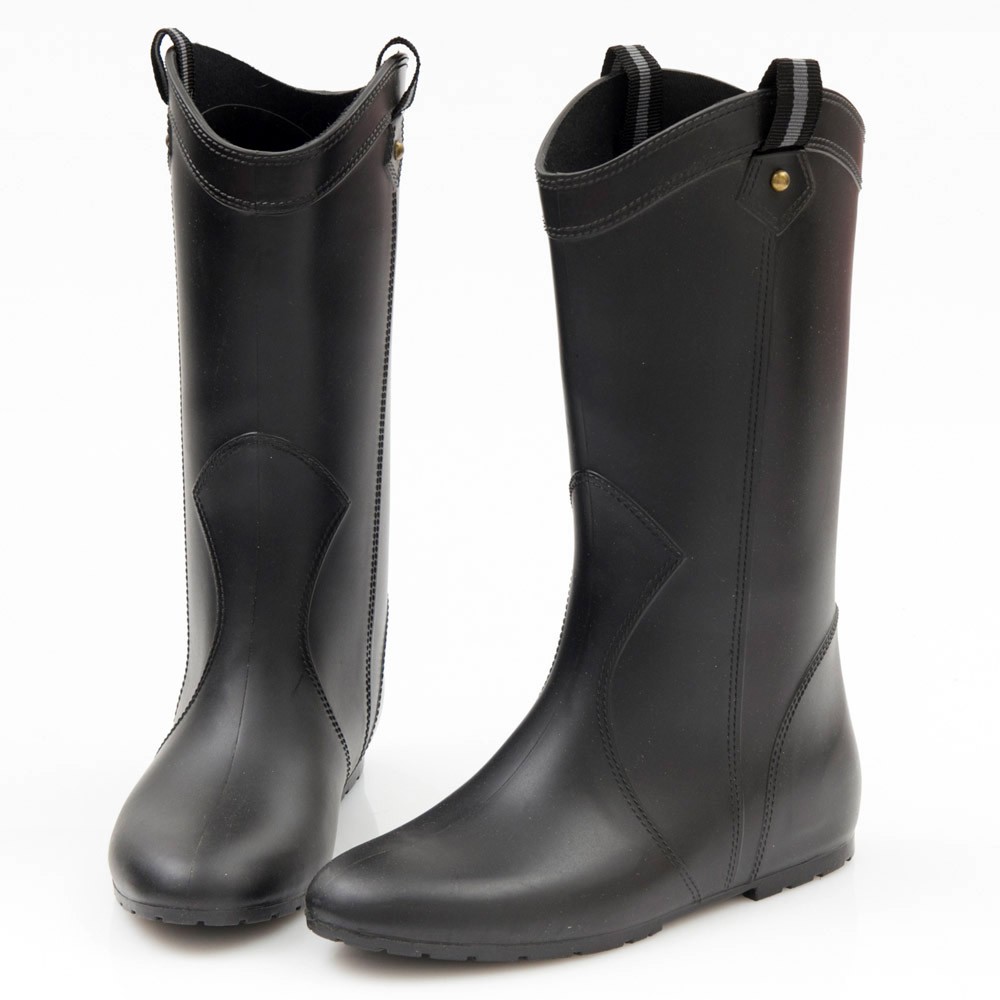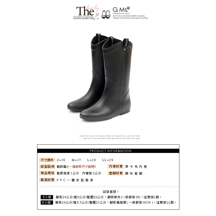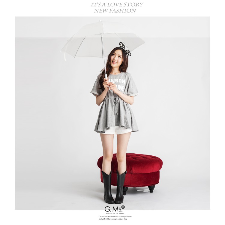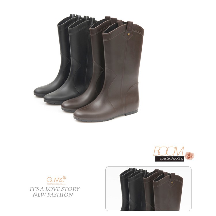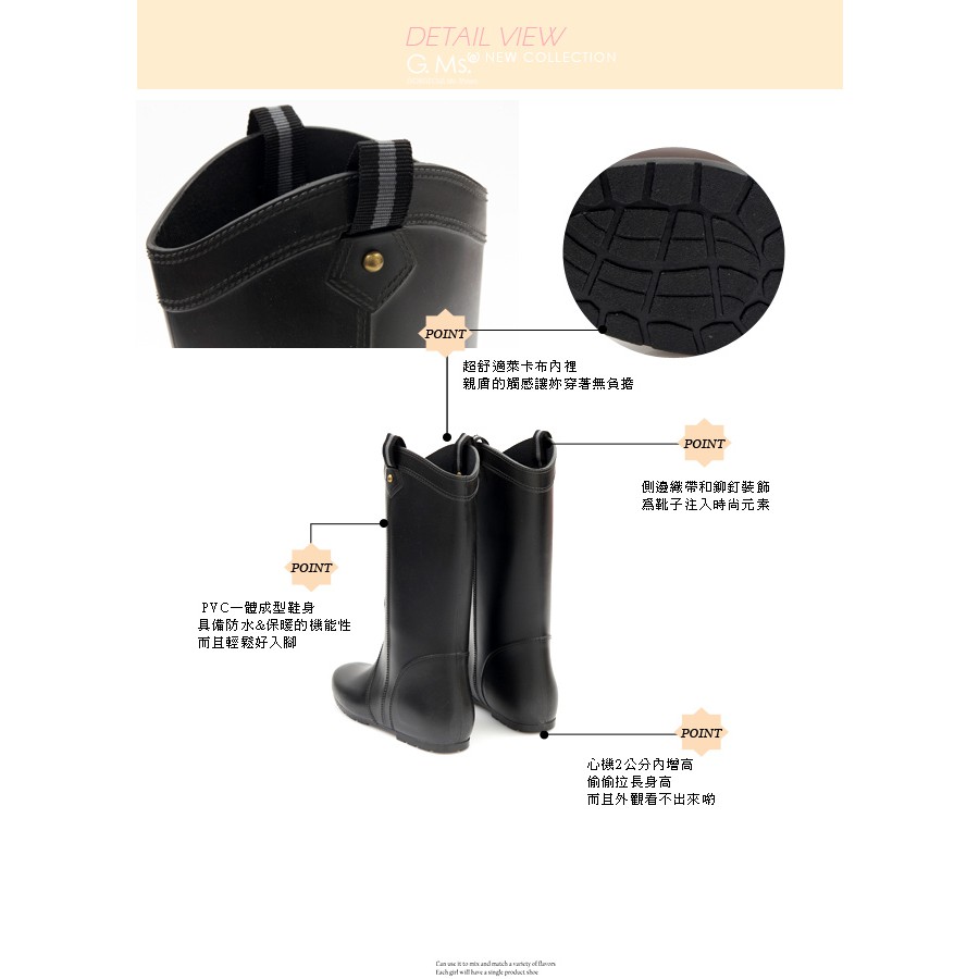 G.Ms. 織帶鉚釘心機內增高中筒雨靴-黑色