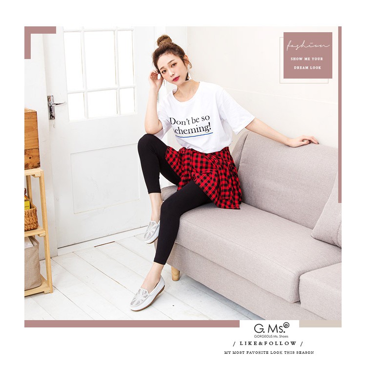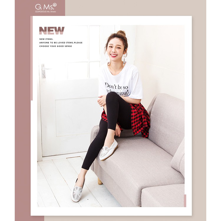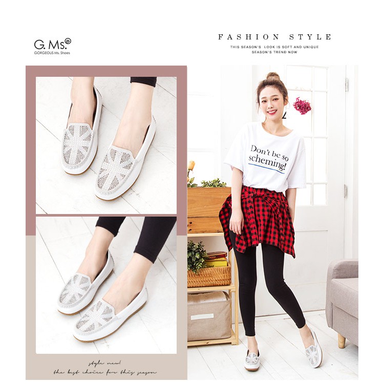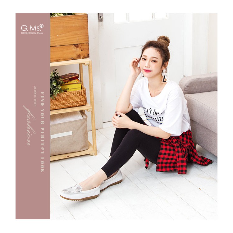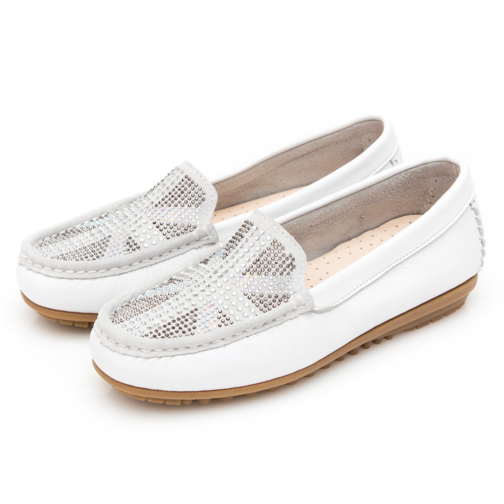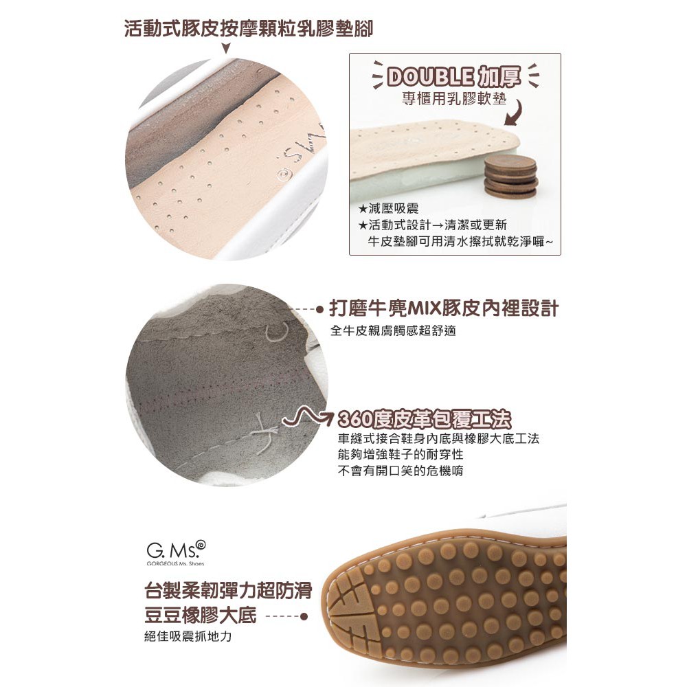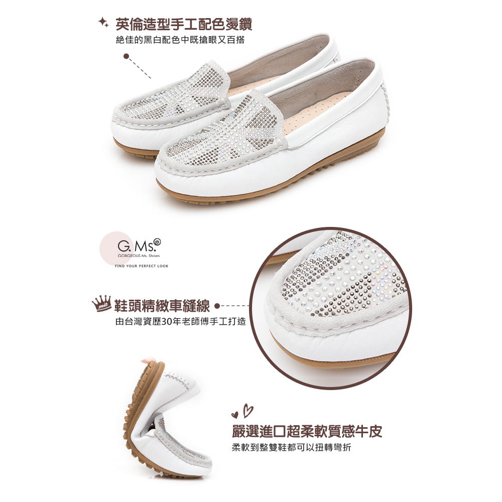G.Ms. MIT系列-英倫造型燙鑽軟Q牛皮莫卡辛豆豆鞋-白色