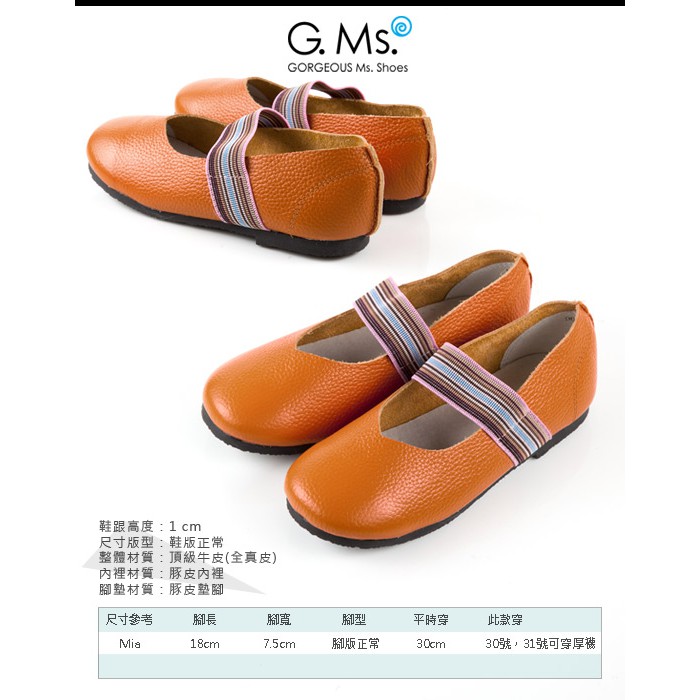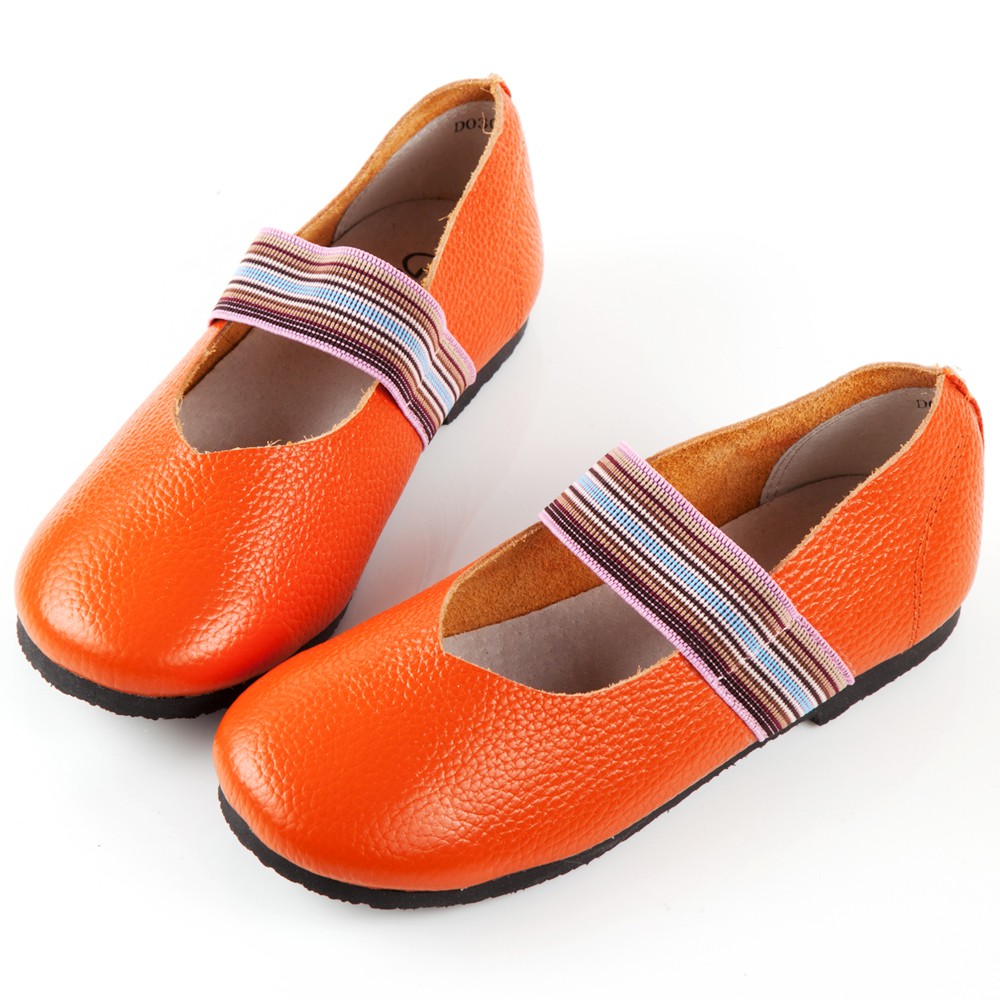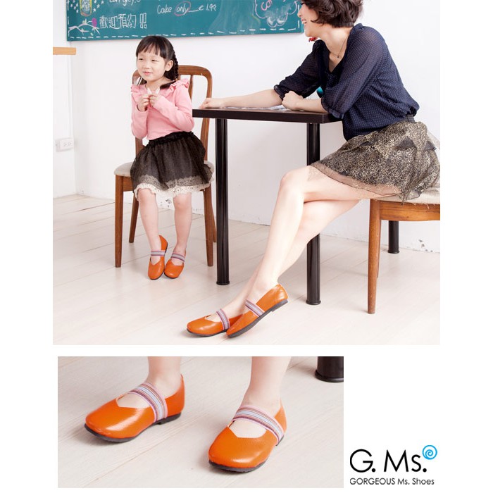 G.Ms. 童鞋-繽紛鬆緊帶圓頭牛皮休閒鞋-橘色