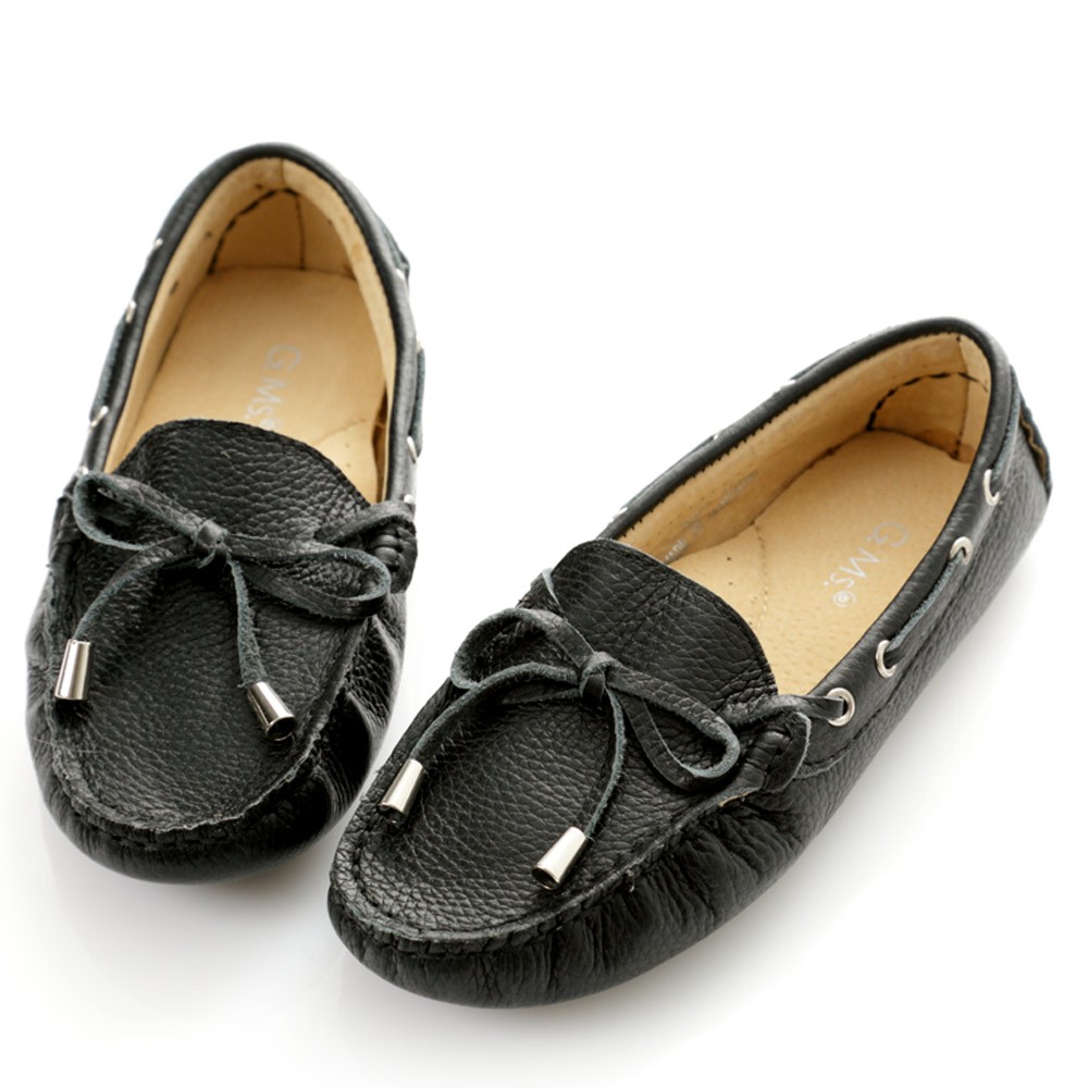 G.Ms. 童鞋-全真皮蝴蝶結休閒鞋-寵愛黑