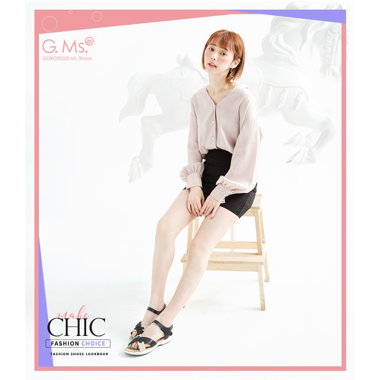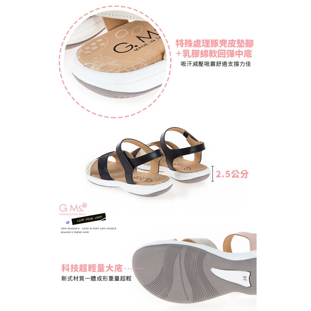 G.Ms. MIT系列-超輕量牛皮交叉休閒厚底涼鞋-黑色