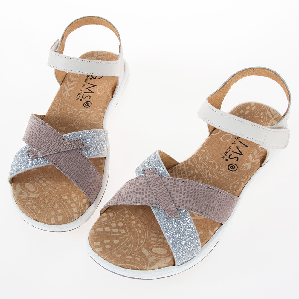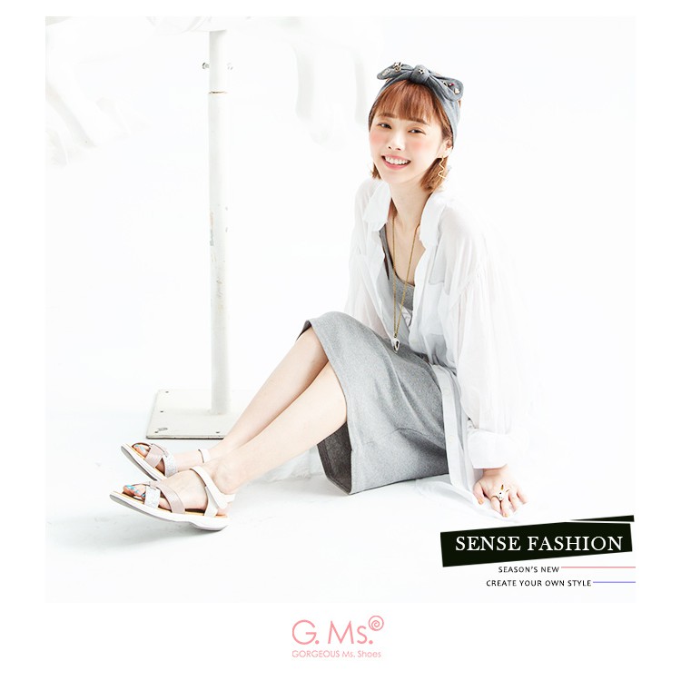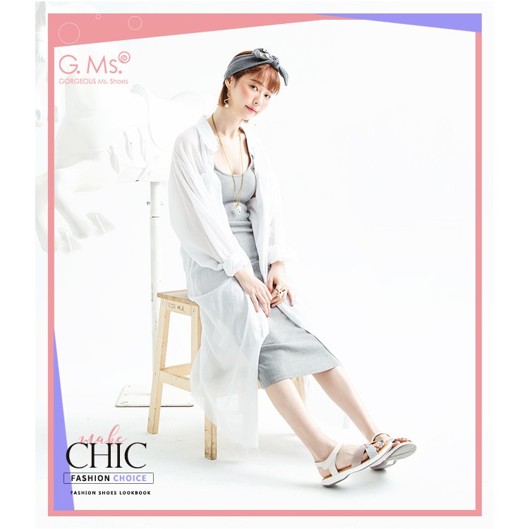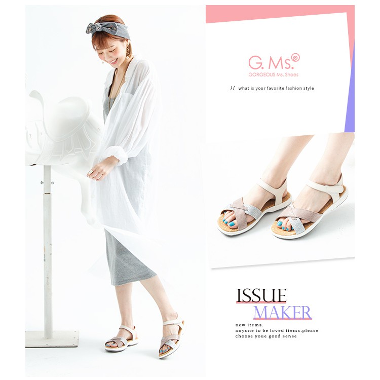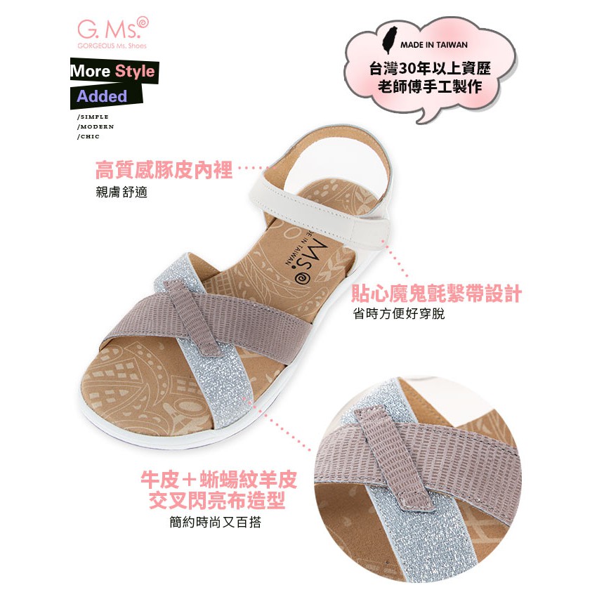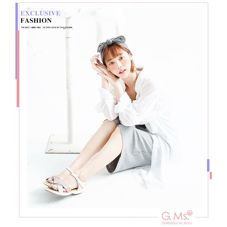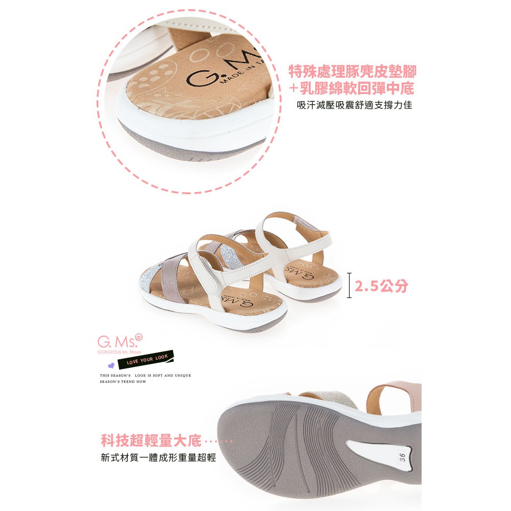 G.Ms. MIT系列-超輕量牛皮交叉休閒厚底涼鞋-米白