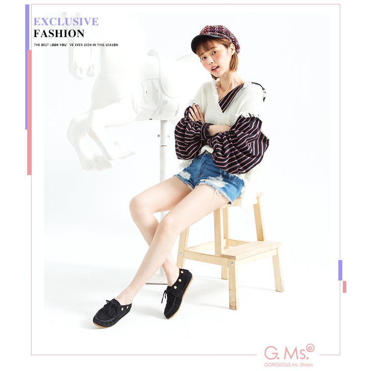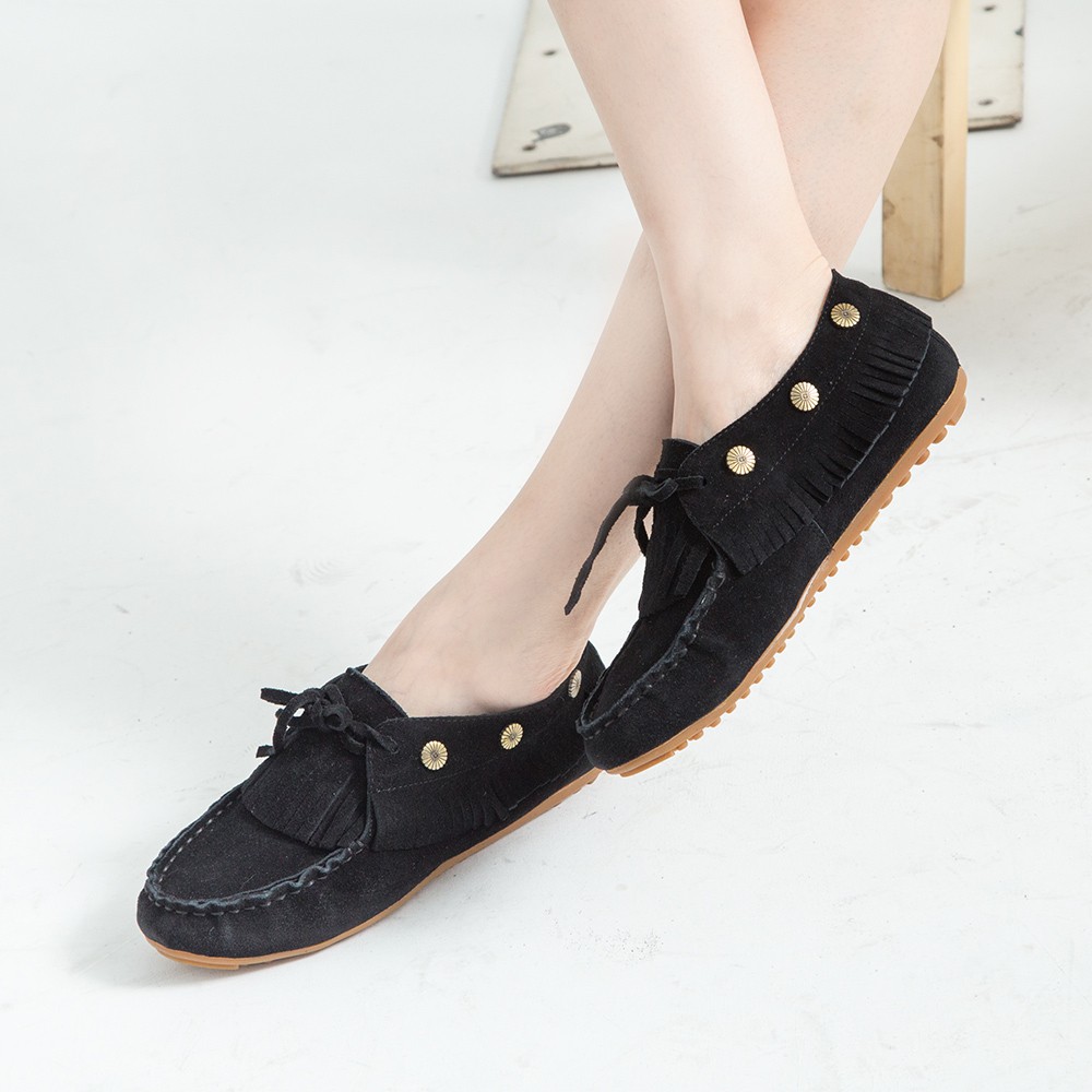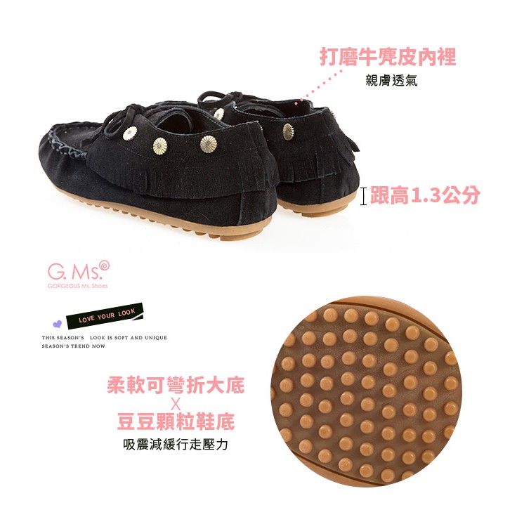 G.Ms. 牛麂皮綁帶流蘇休閒豆豆鞋-黑色