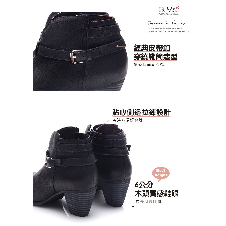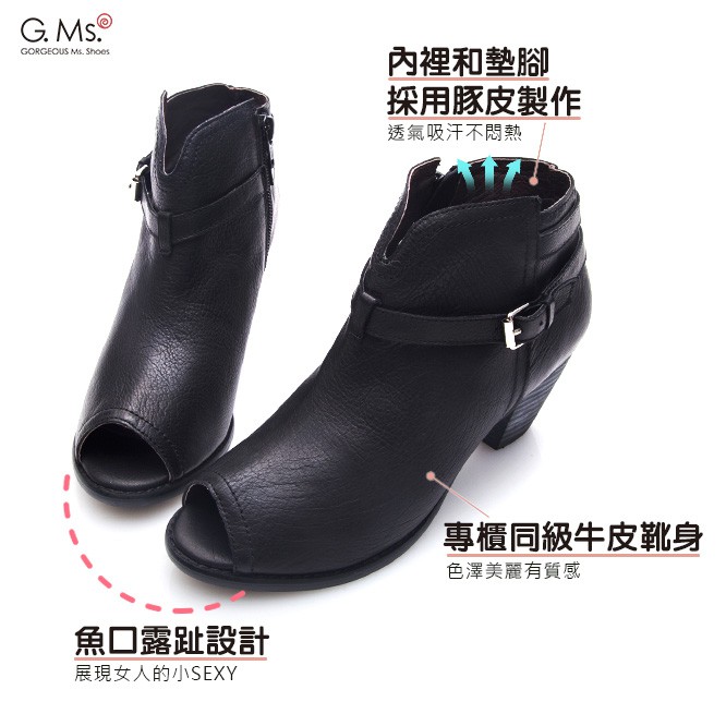 G.Ms. 牛皮魚口拉鍊粗跟踝短靴-黑色34碼