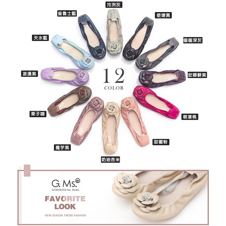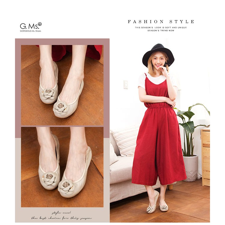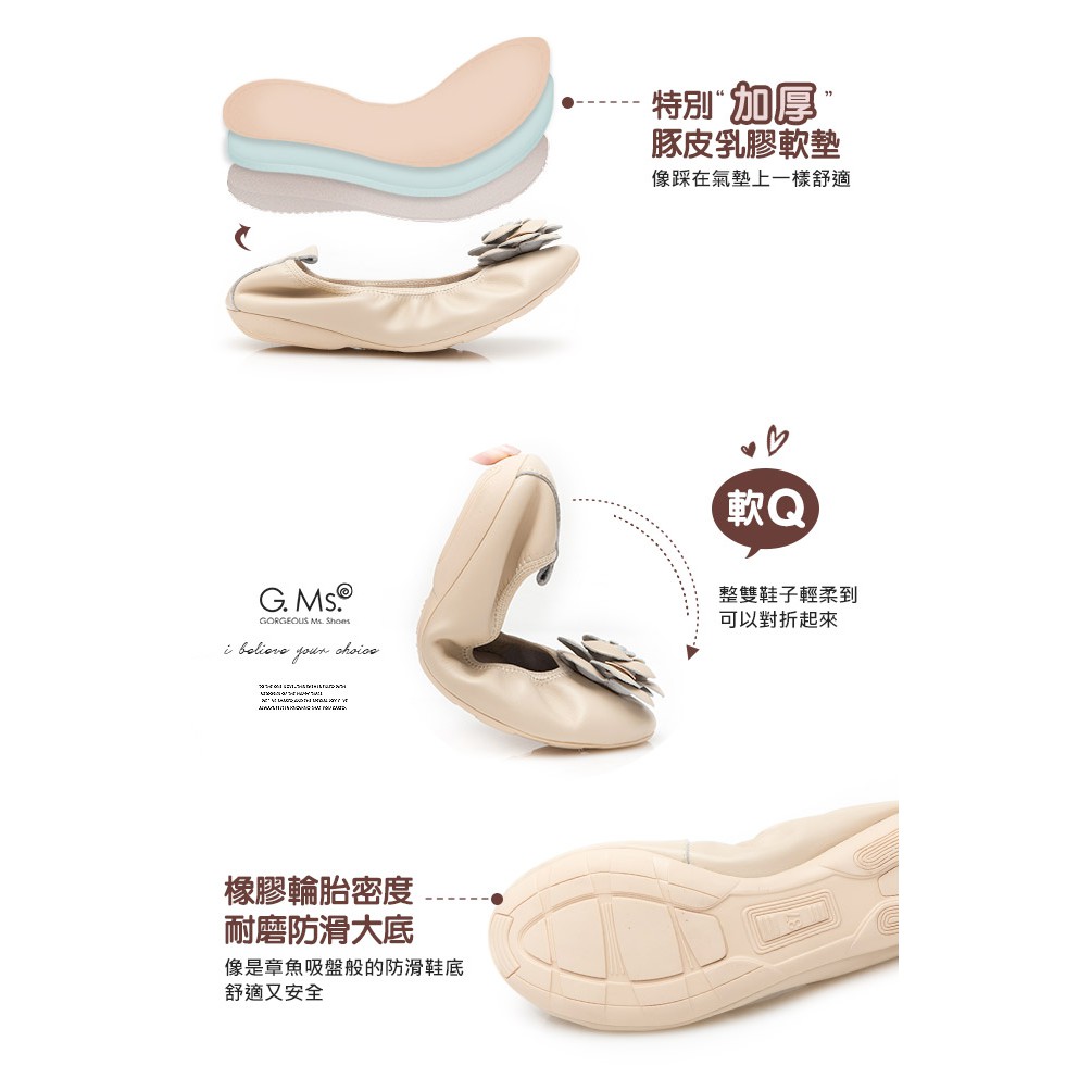G.Ms. 經典山茶花-柔軟彎折牛皮平底娃娃鞋-奶油杏米
