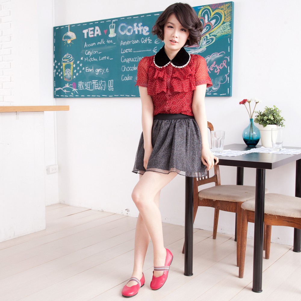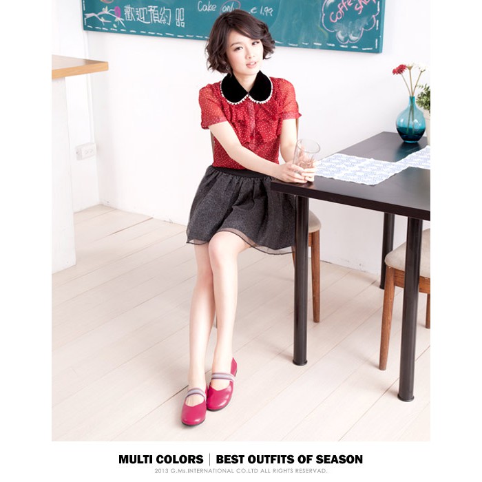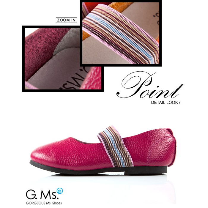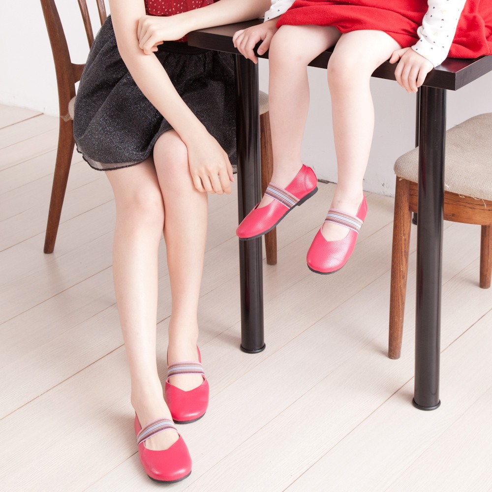 G.Ms. 親子鞋-繽紛鬆緊帶圓頭牛皮休閒鞋-桃紅
