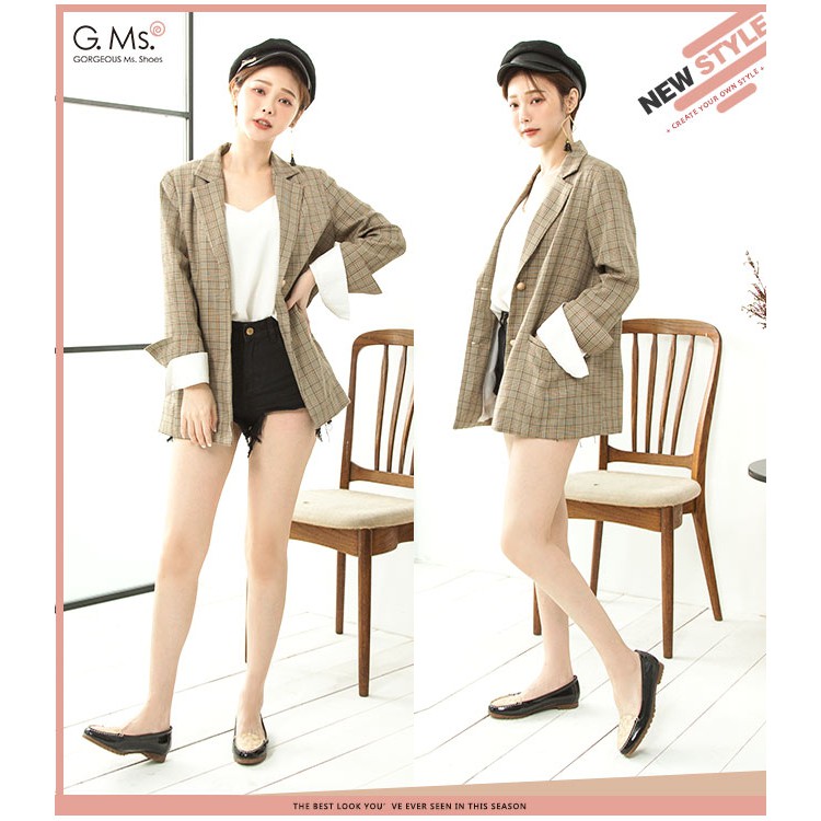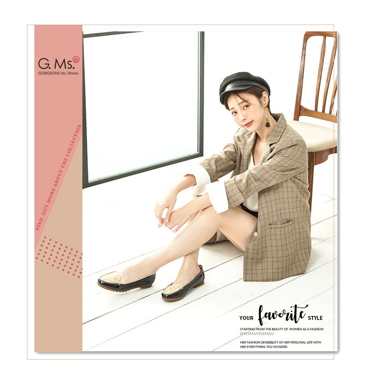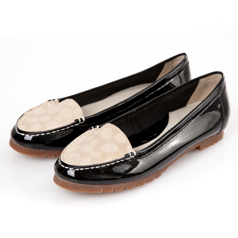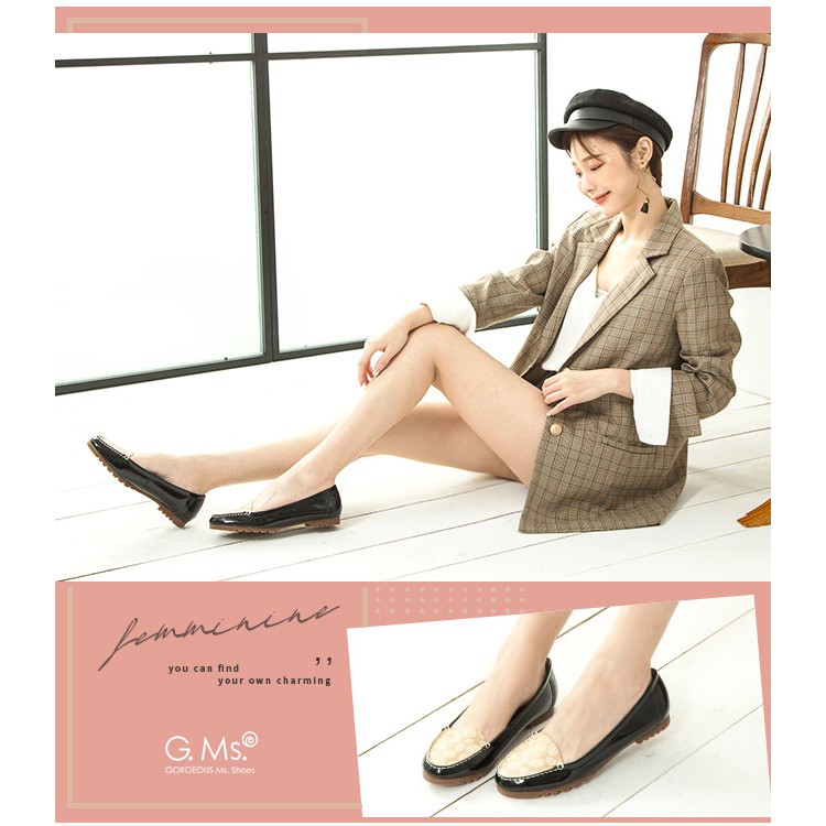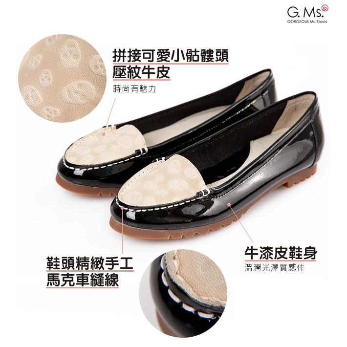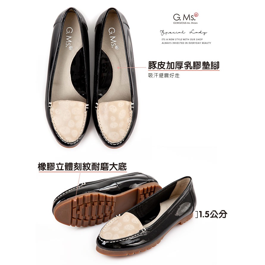 G.Ms. 漆皮拼接壓紋牛皮莫卡辛平底鞋-黑色