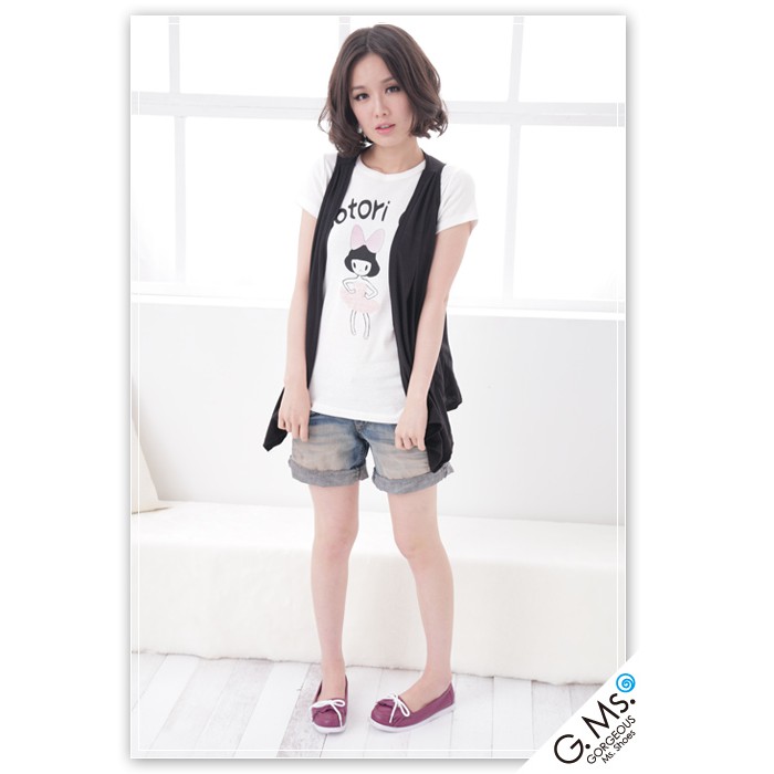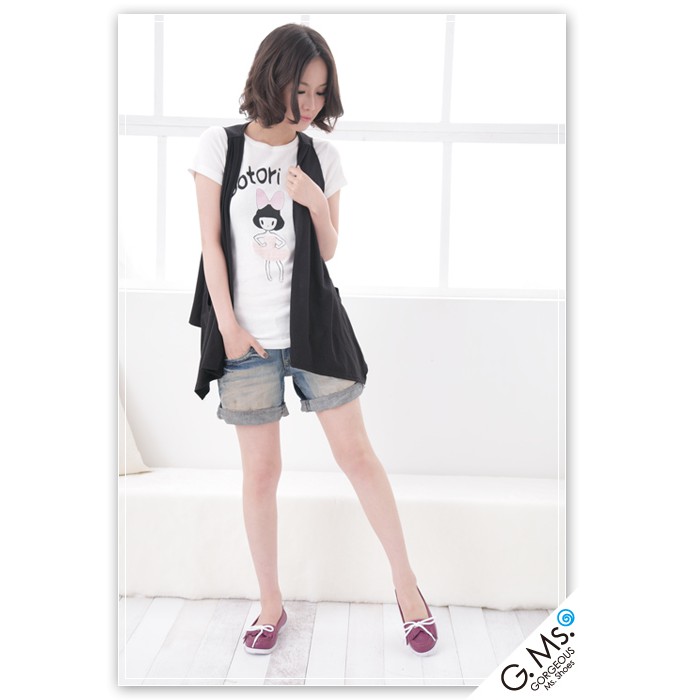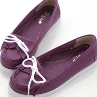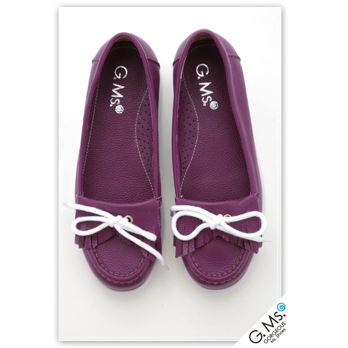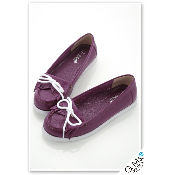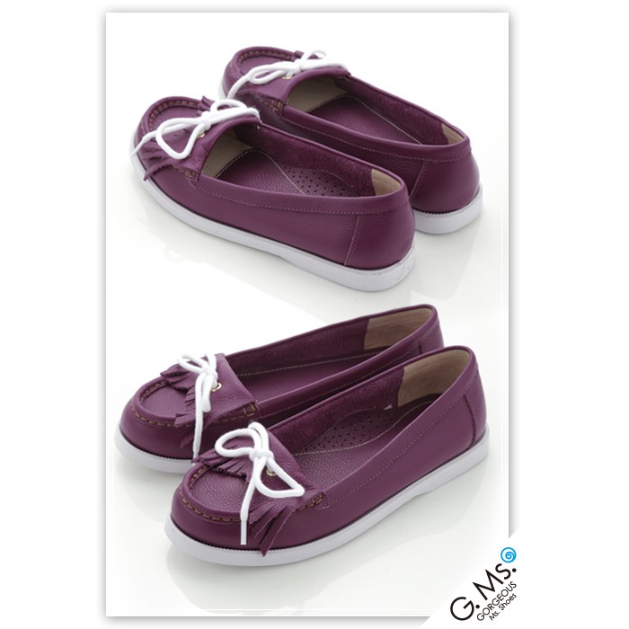 G.Ms. 蝴蝶結流蘇莫卡辛全真皮帆船鞋-紫色