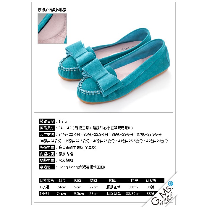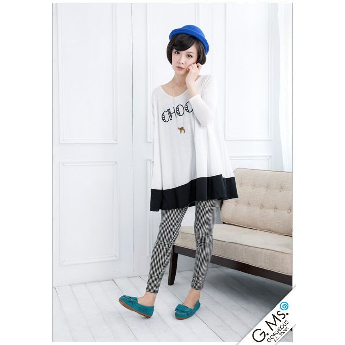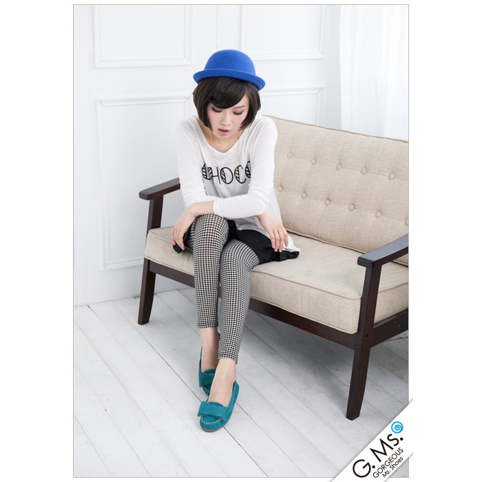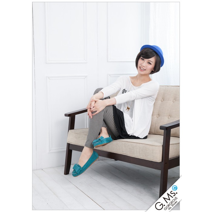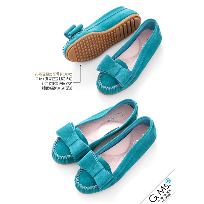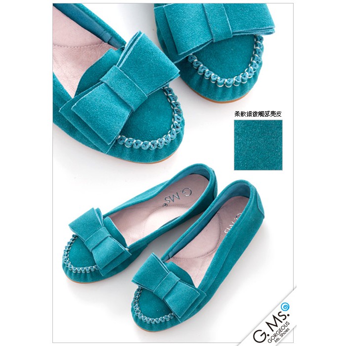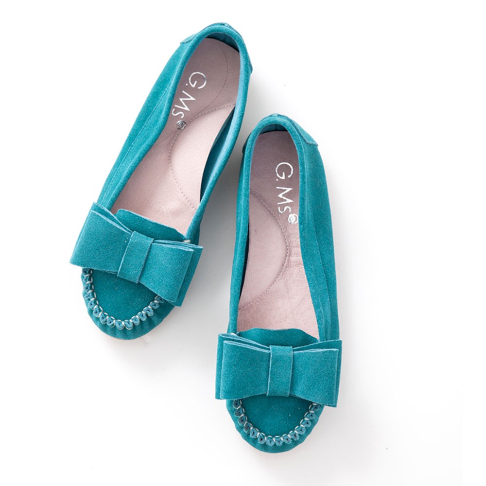 G.Ms. 雙層蝴蝶結真皮莫卡辛豆豆鞋-牛麂皮湖水綠