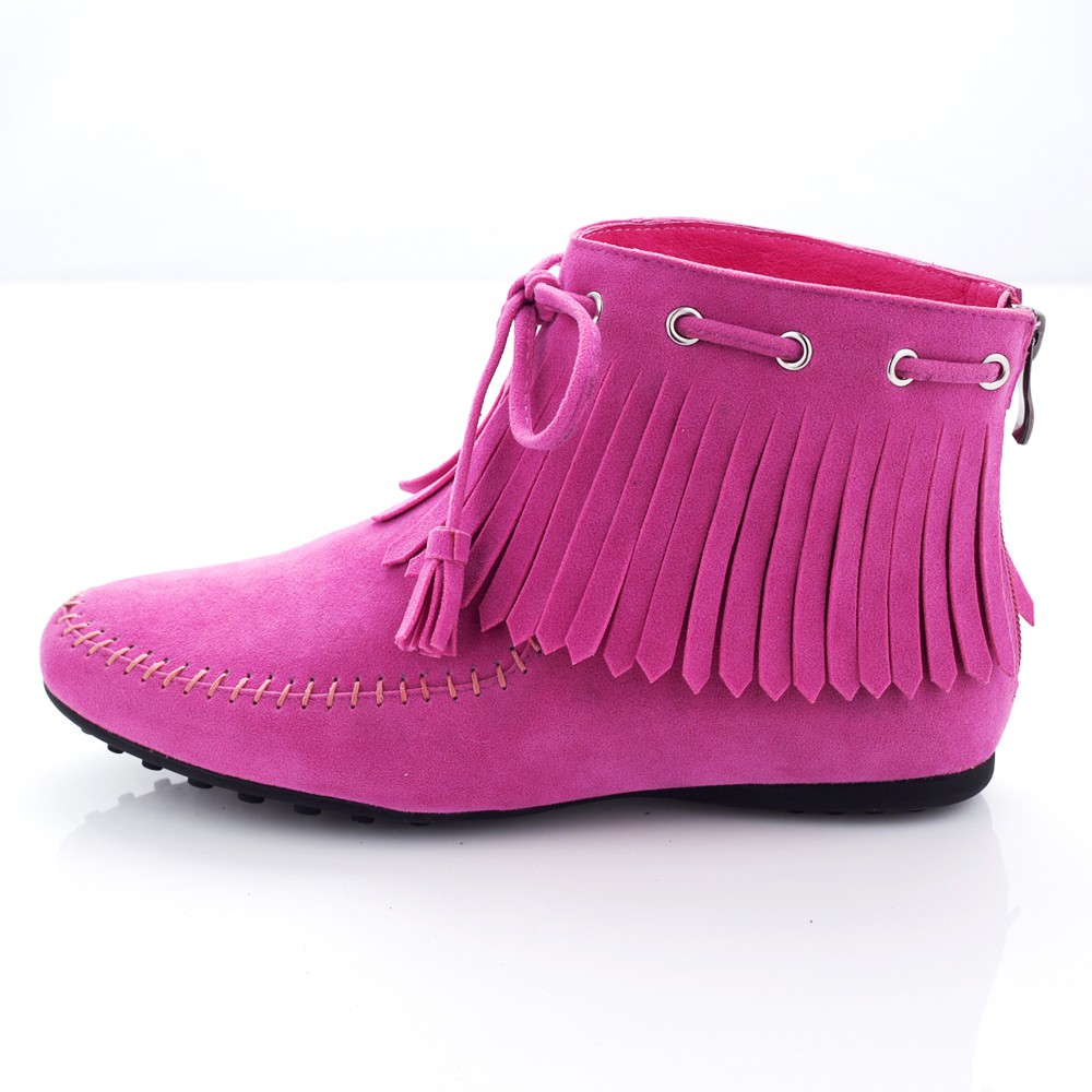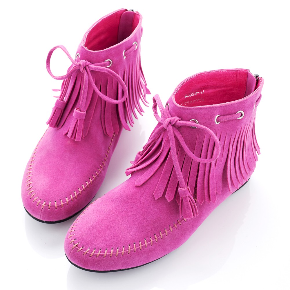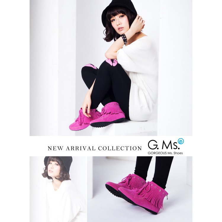 G.Ms. 流蘇綁帶豆豆底短靴-桃紅色35碼
