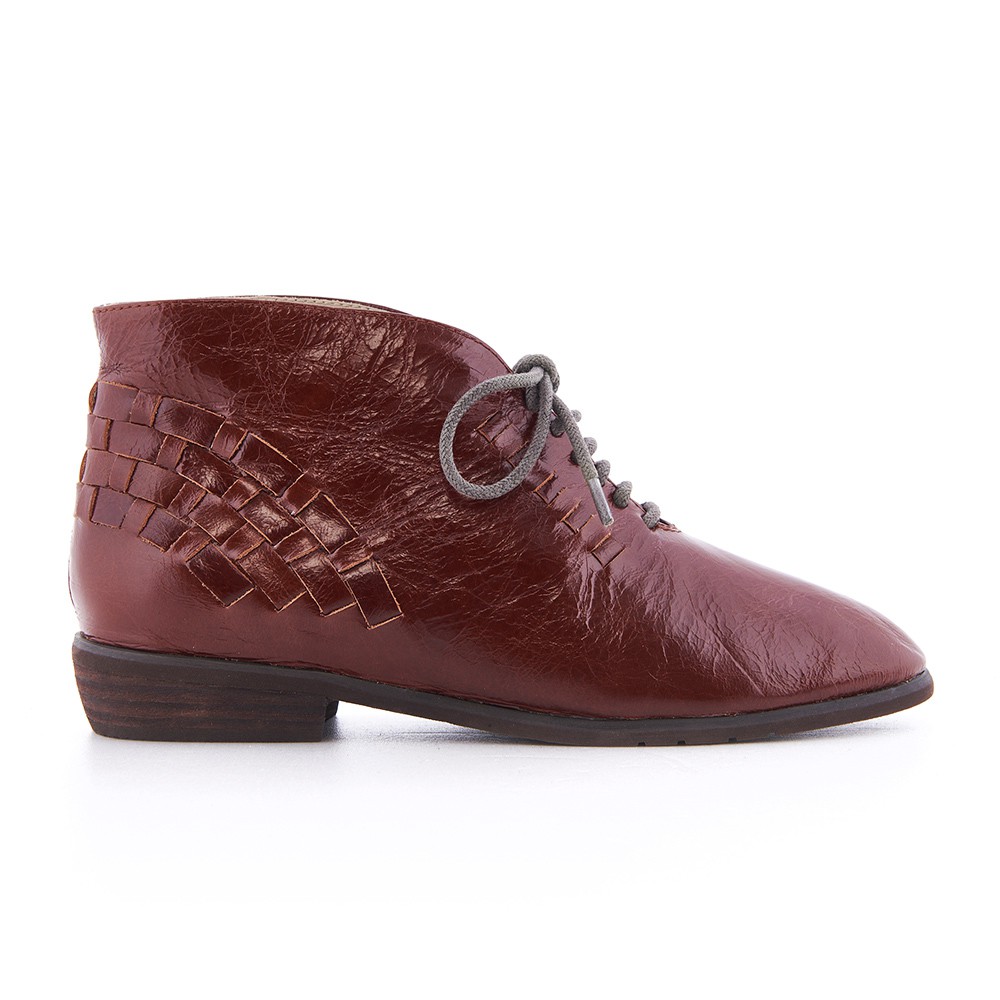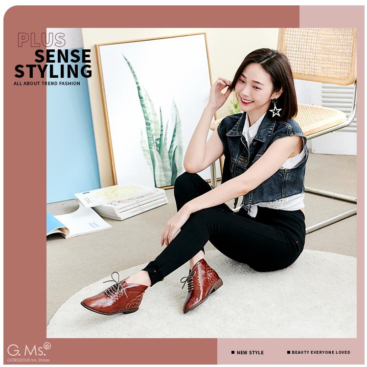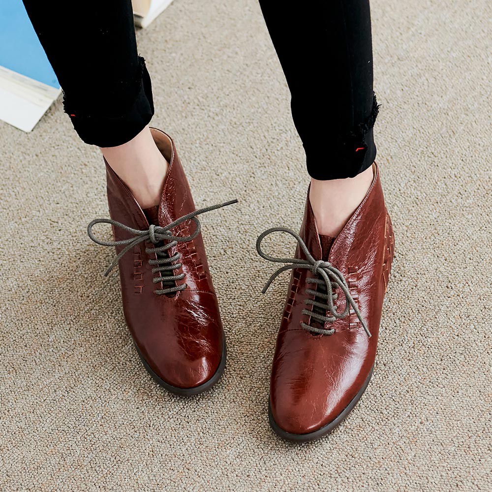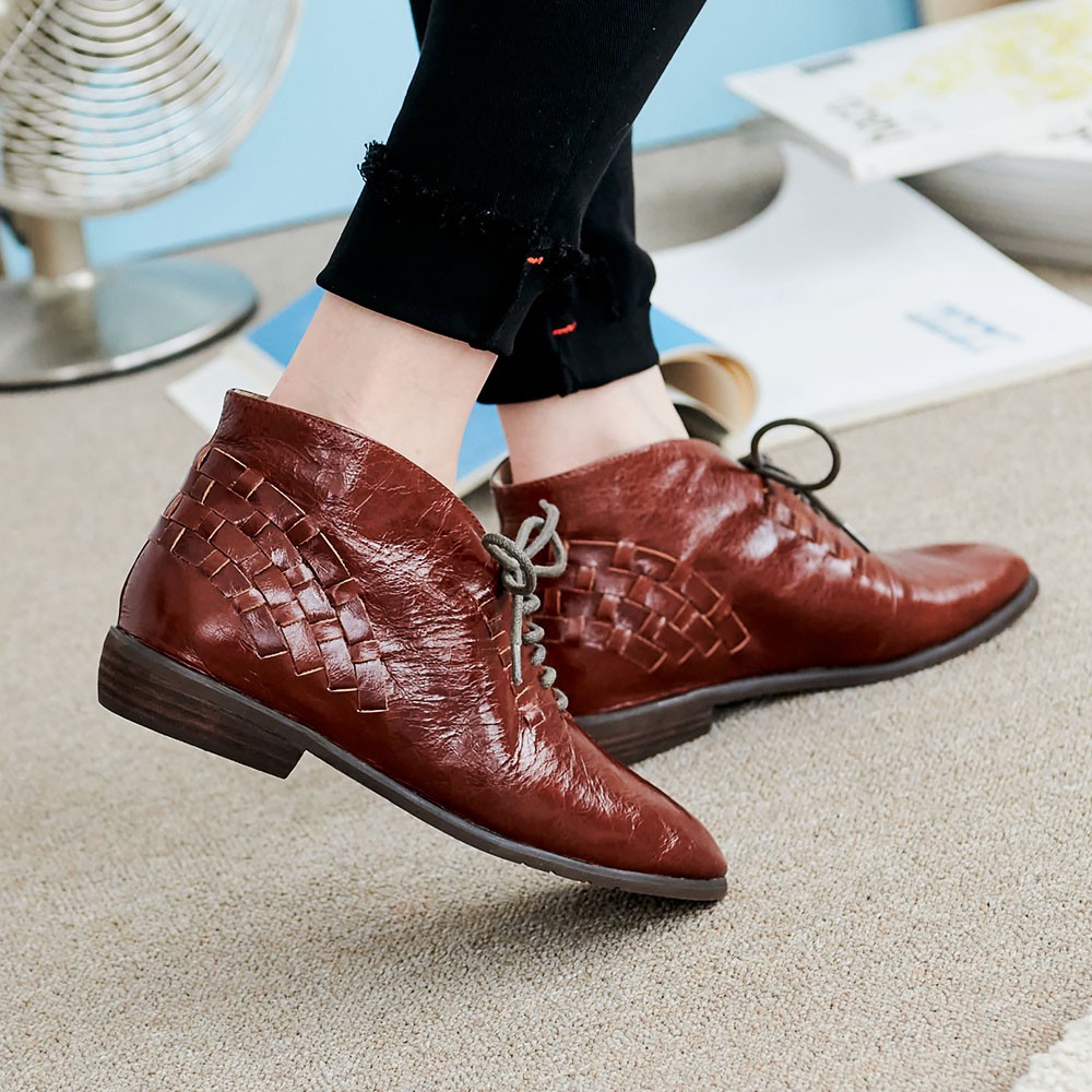 G.Ms. 手工編織打腊牛皮牛津小短靴-咖啡色36碼