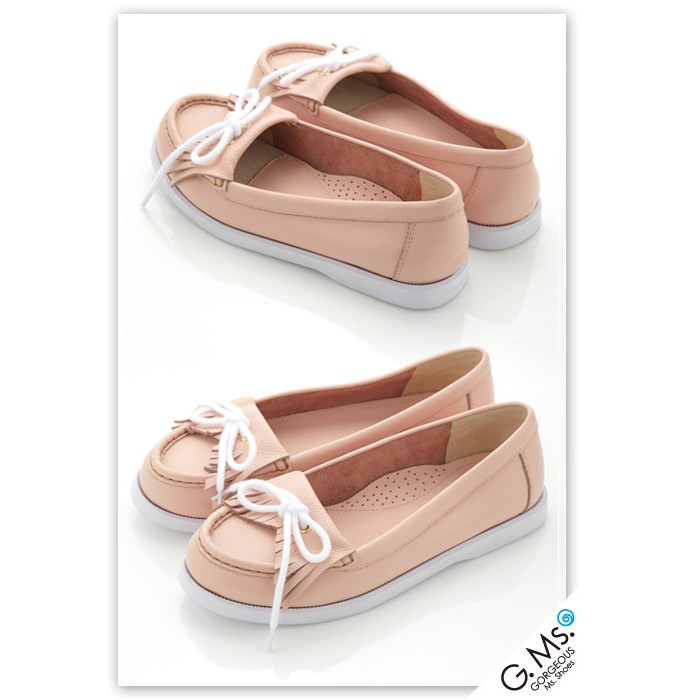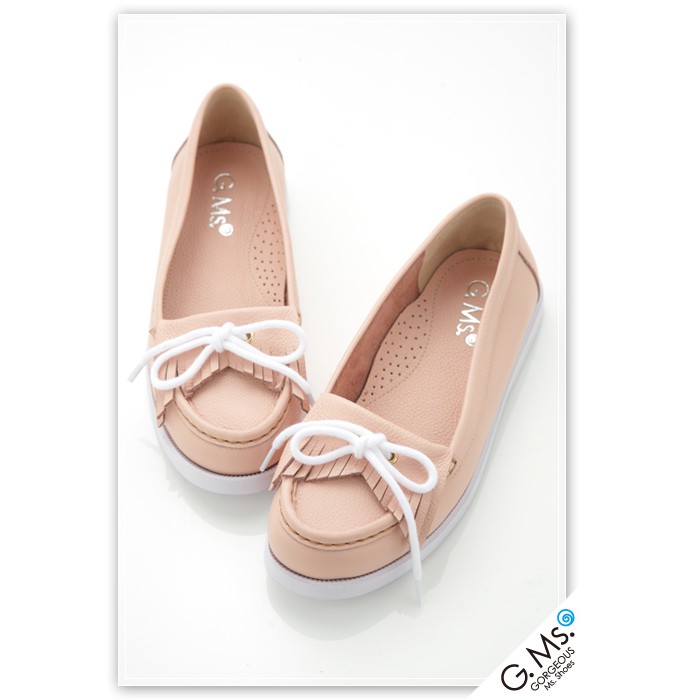 G.Ms. 蝴蝶結流蘇莫卡辛全真皮帆船鞋-粉紅色35碼