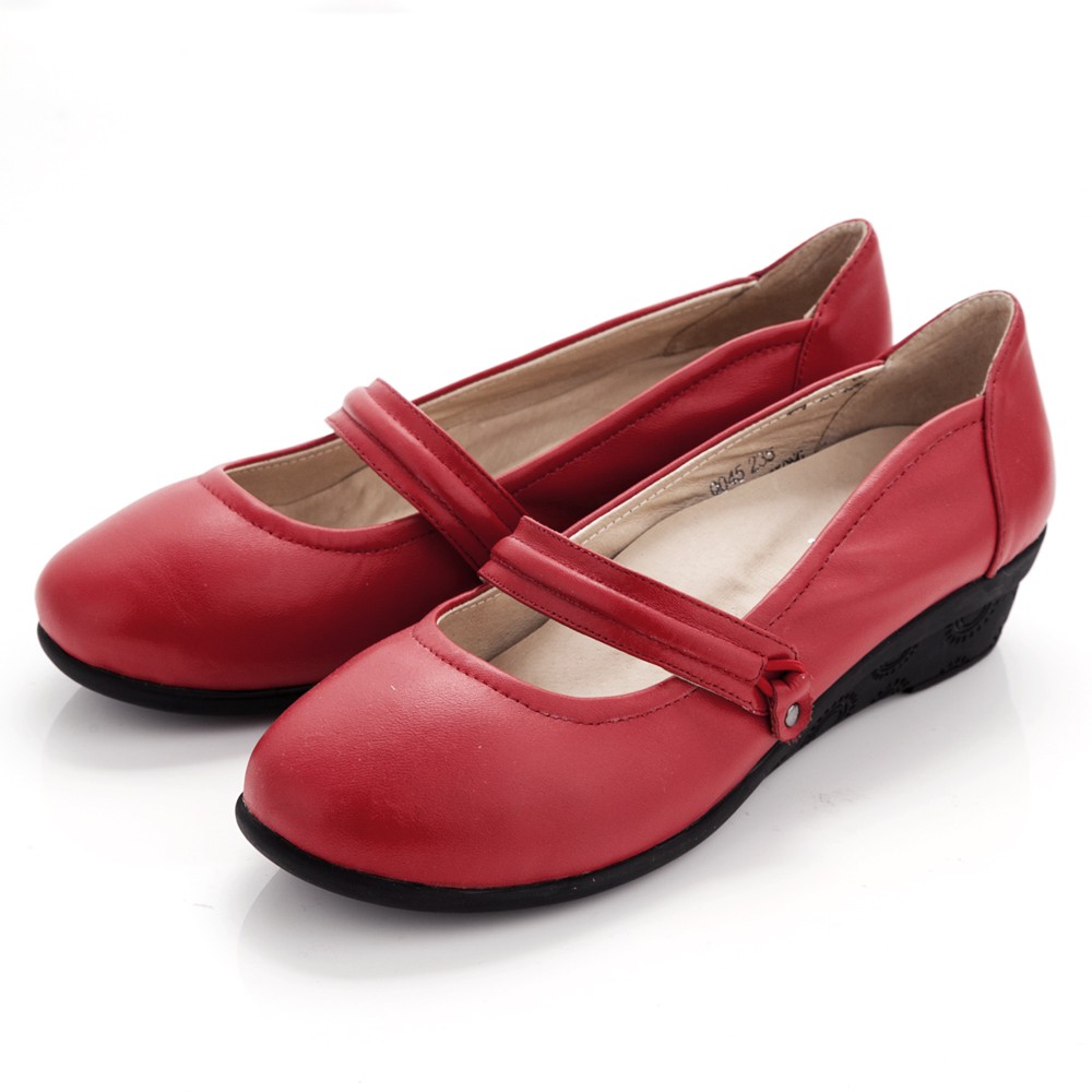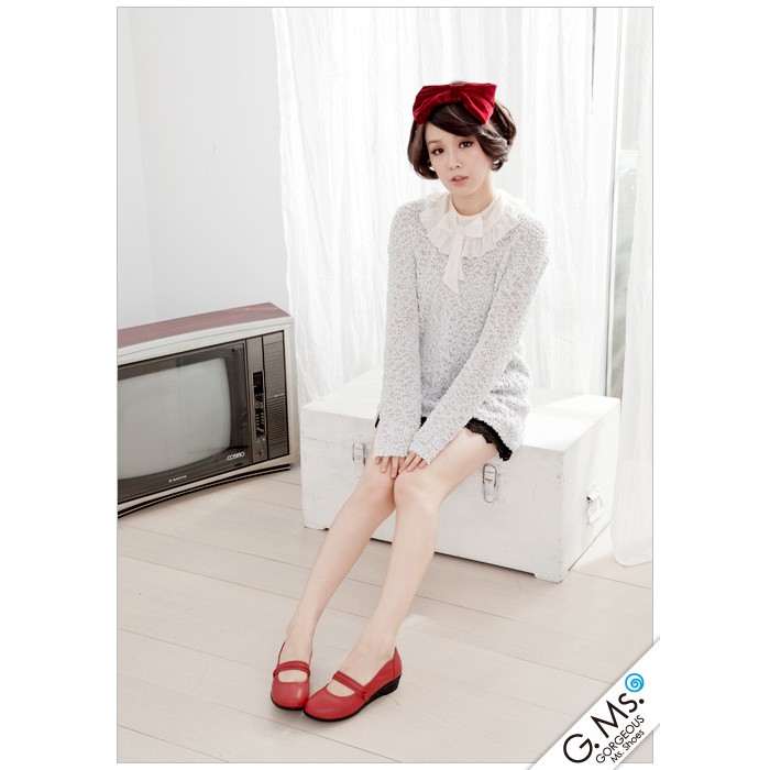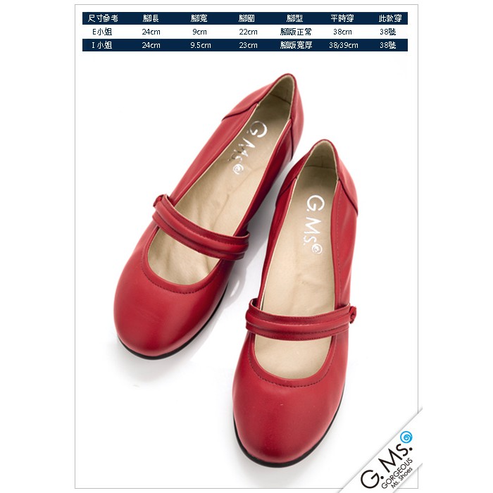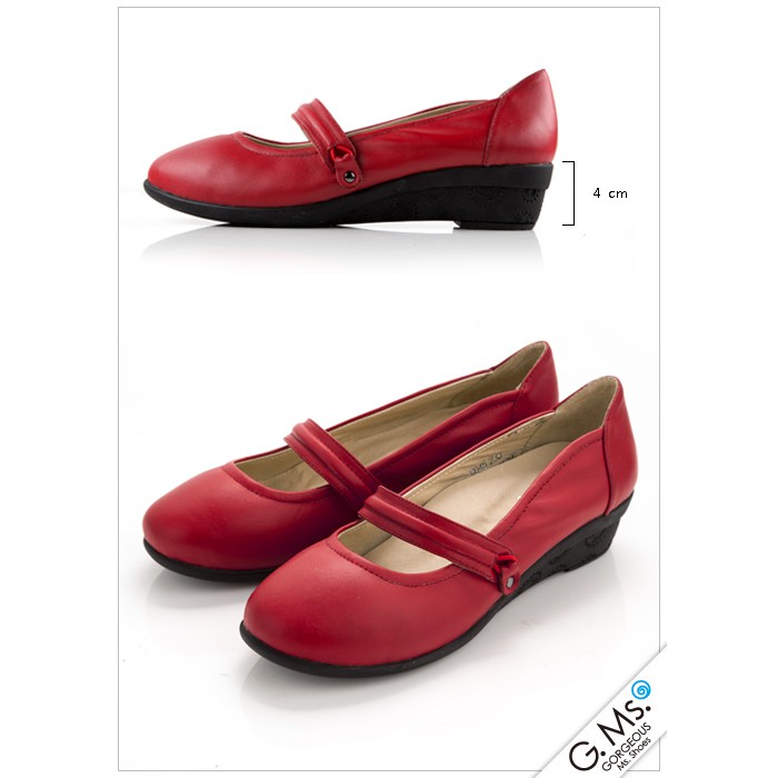 G.Ms. 全真皮楔型娃娃鞋-紅色34碼