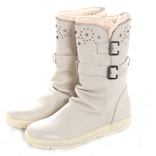 G.Ms. 針織蕾絲牛皮雕花中筒靴-米白39碼