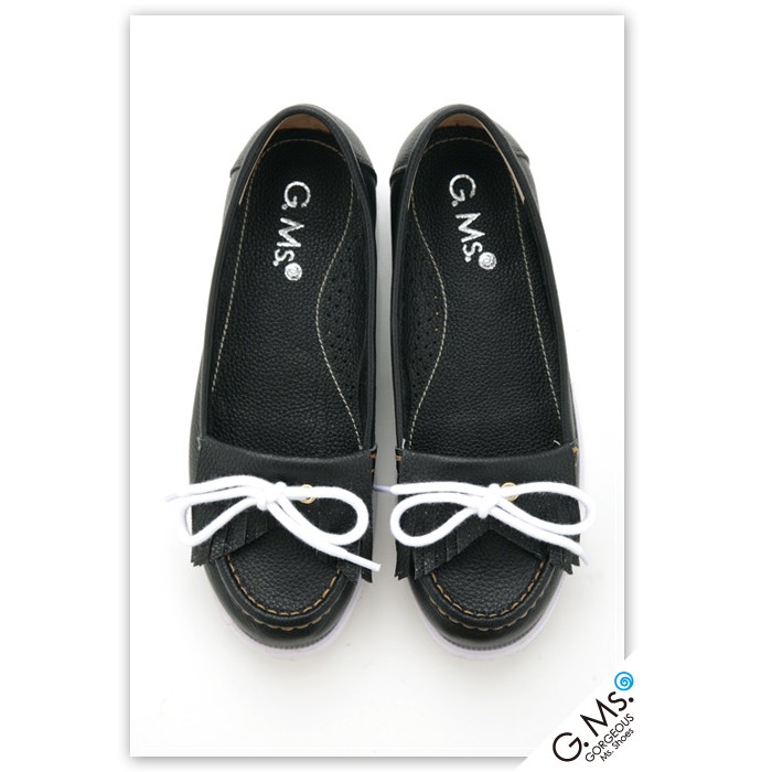 G.Ms. 蝴蝶結流蘇莫卡辛全真皮帆船鞋-黑色