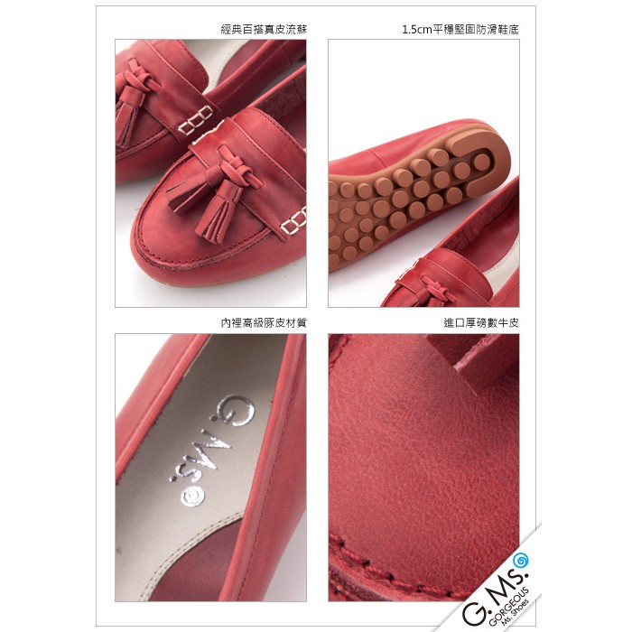 G.Ms. 牛皮柔軟厚底莫卡辛休閒鞋-紅色36碼