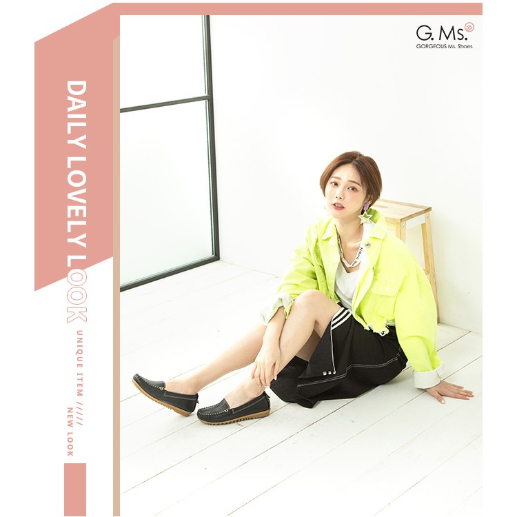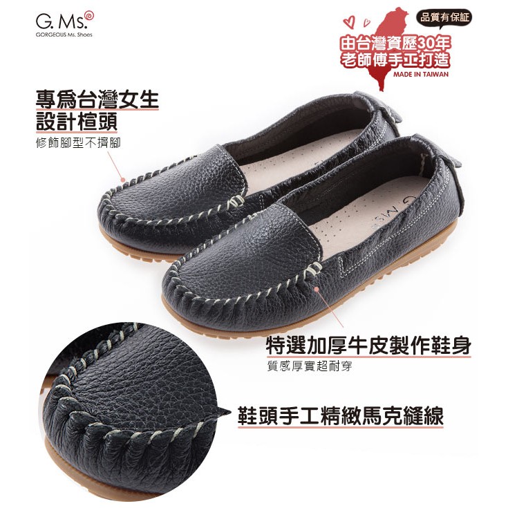 G.Ms. MIT系列-厚實牛皮莫卡辛休閒鞋-黑色
