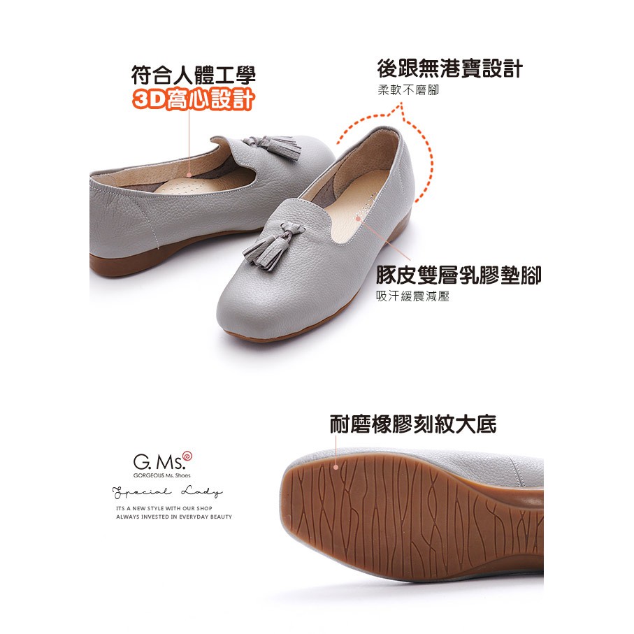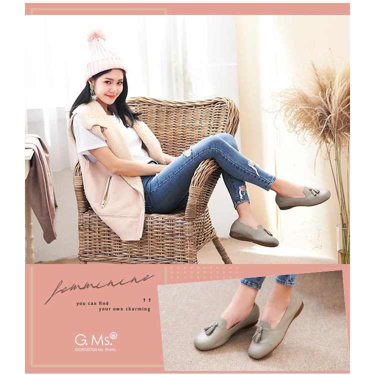 G.Ms. MIT系列-牛皮流蘇樂福休閒懶人平底鞋-灰色