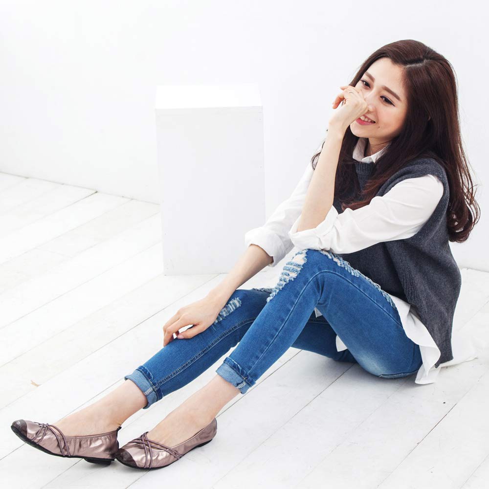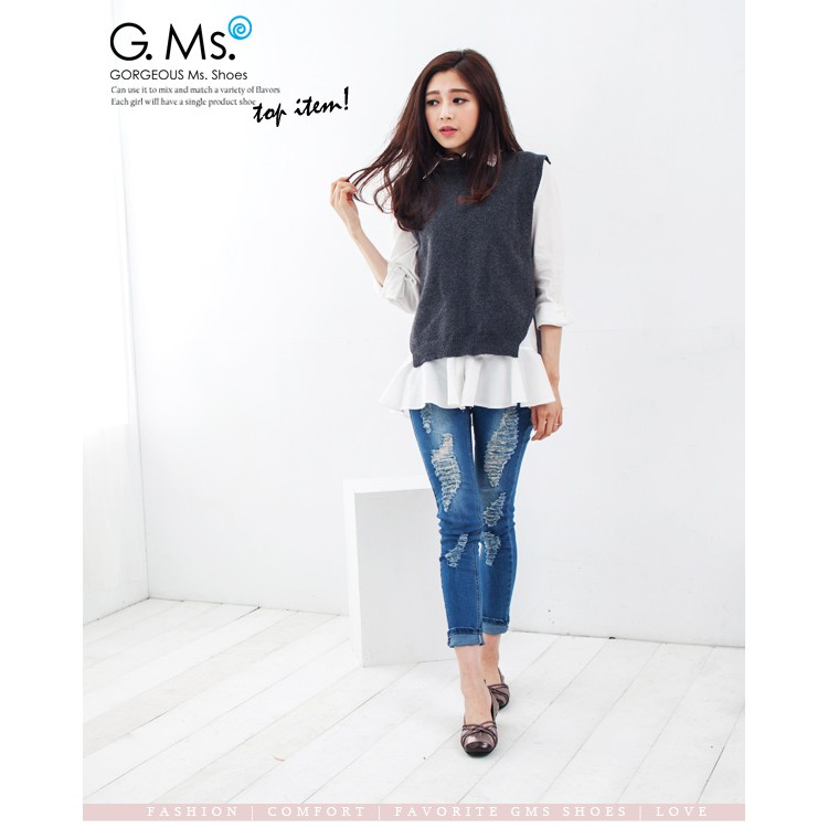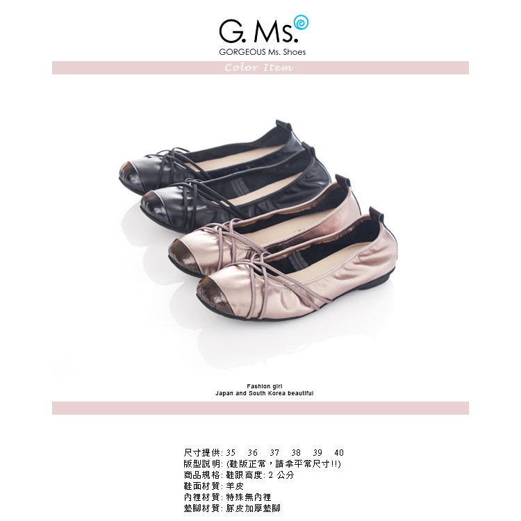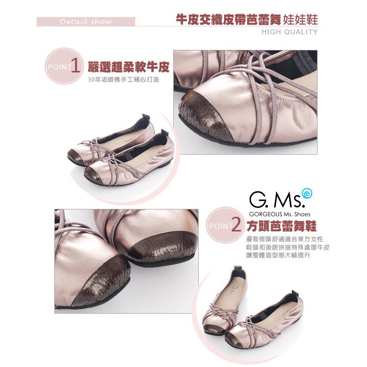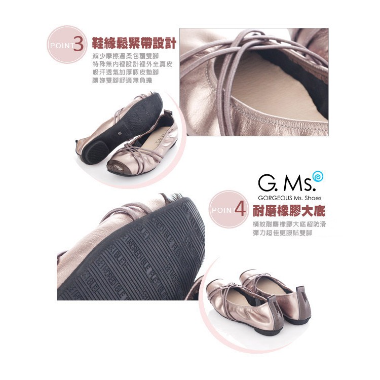 G.Ms. MIT系列-牛皮交織皮帶芭蕾舞娃娃鞋-優雅銀