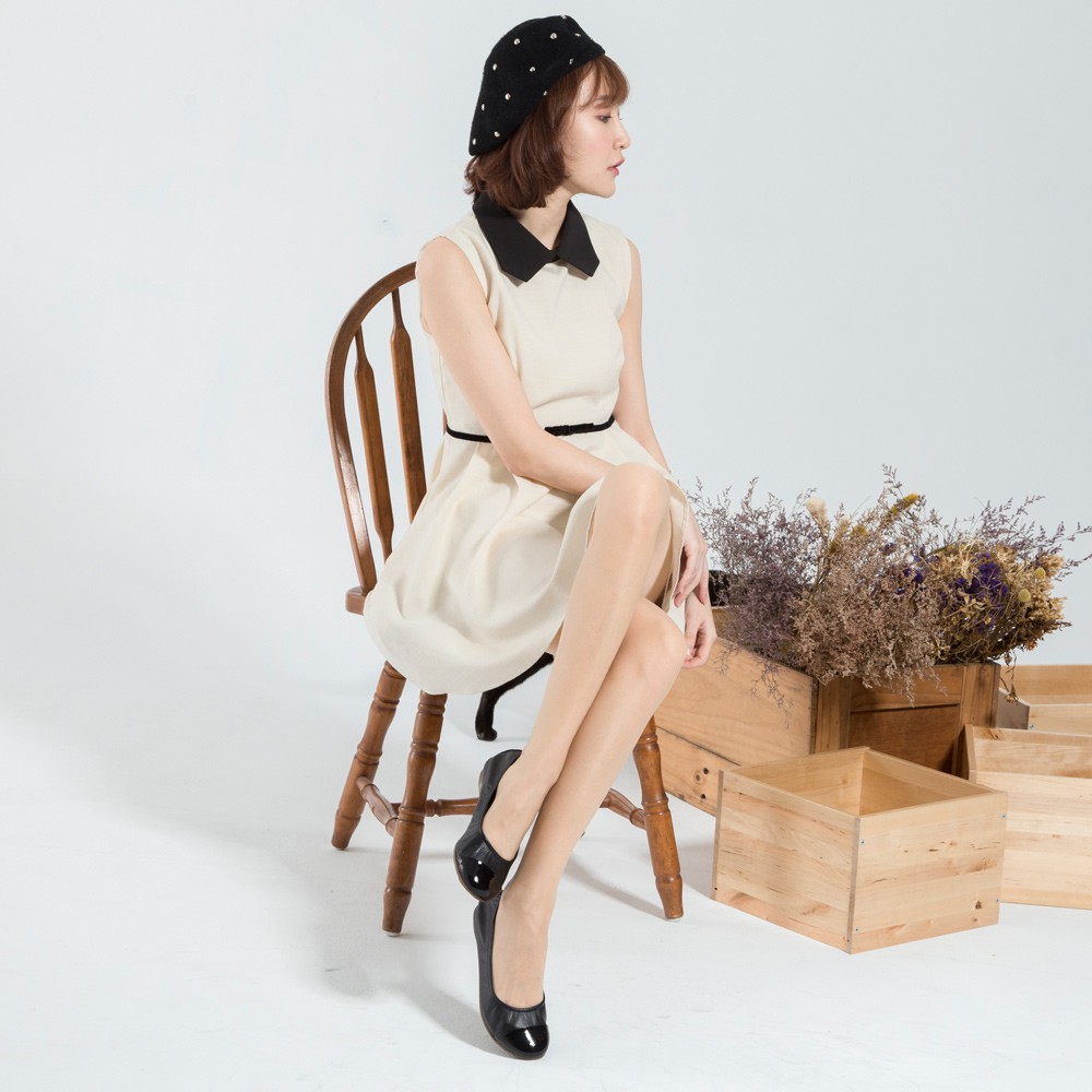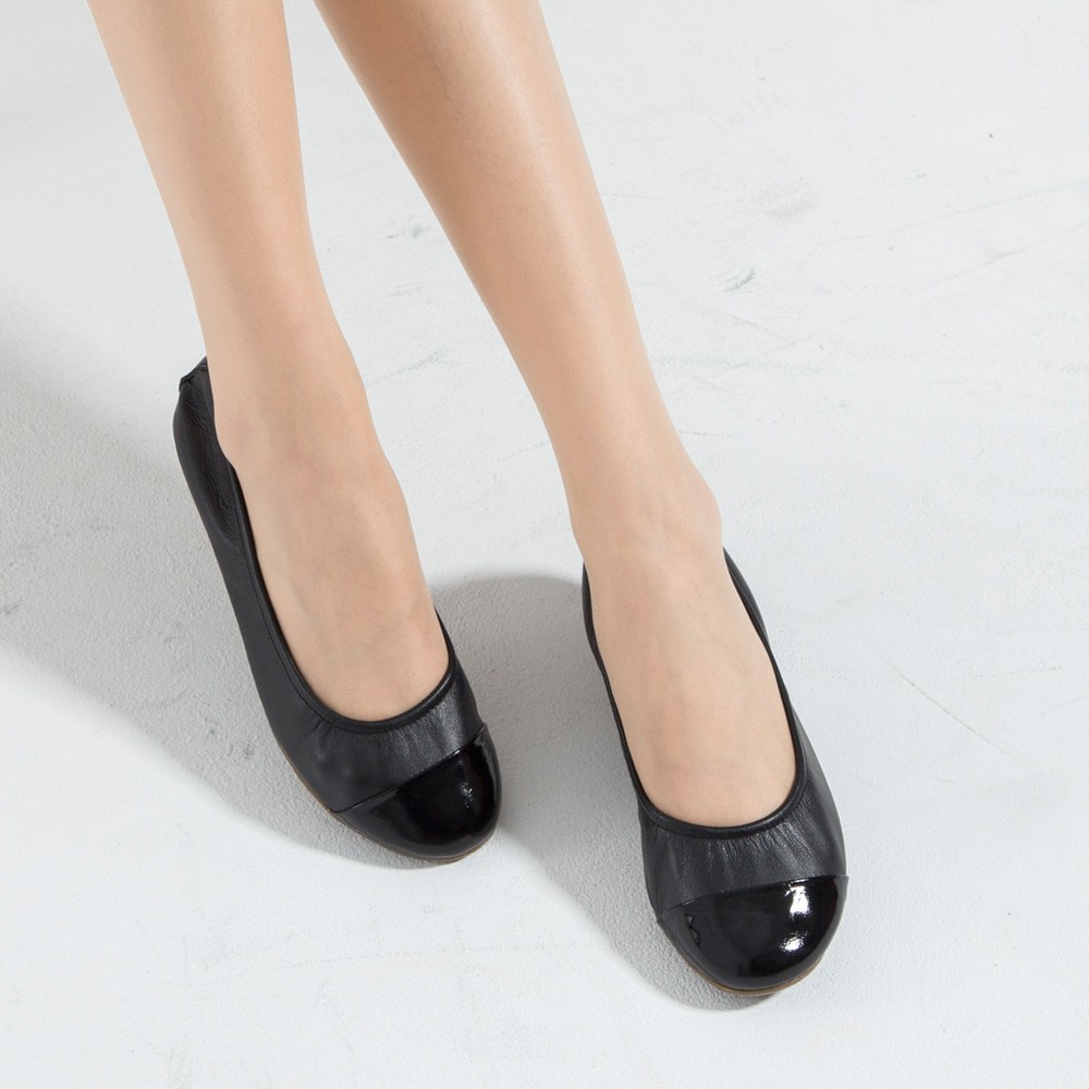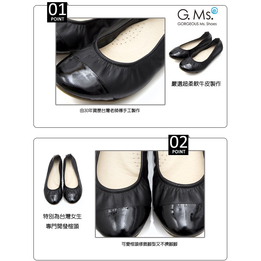G.Ms. MIT系列-素面漆皮拼接牛皮娃娃鞋-黑色